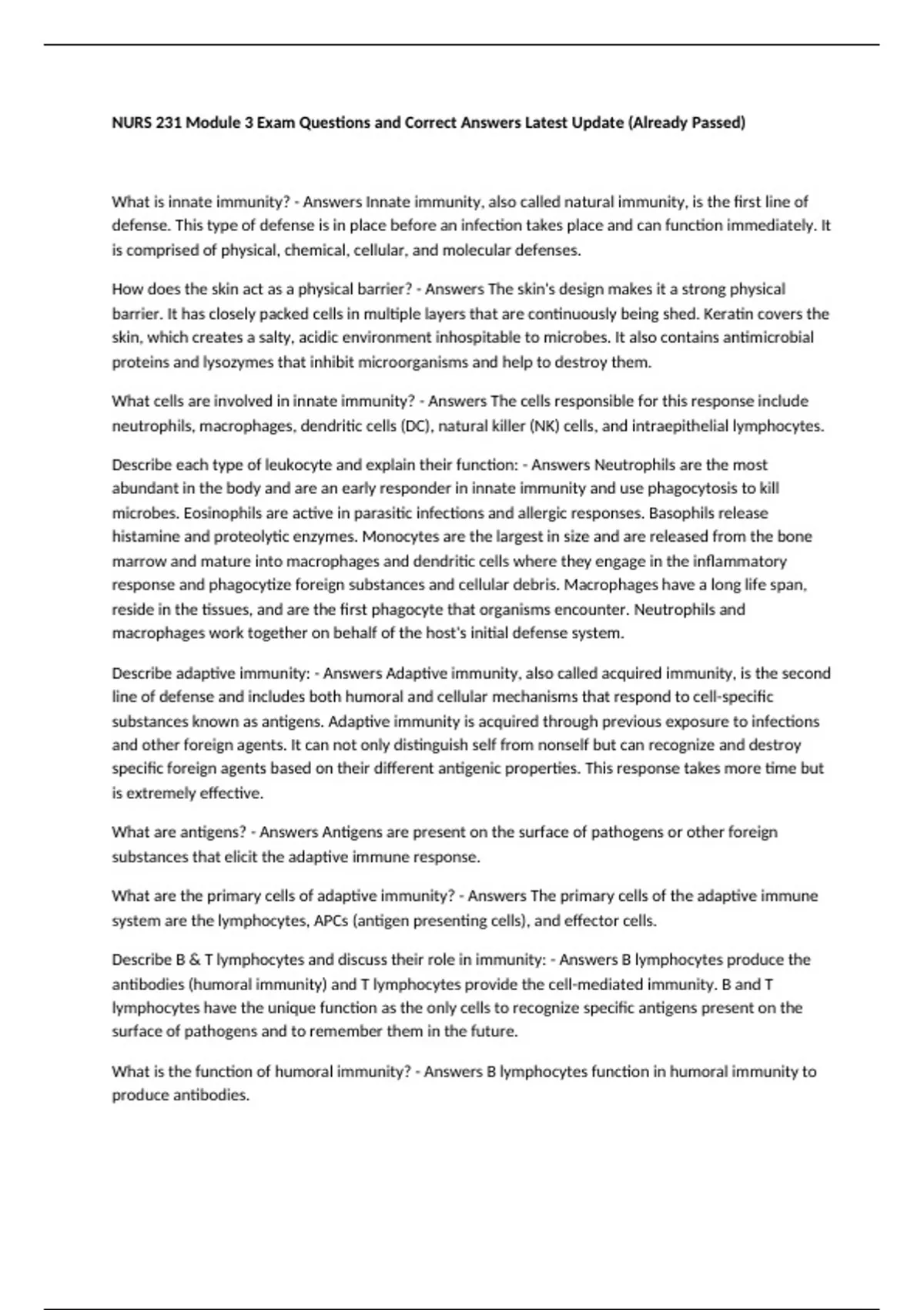 Describe adaptive immunity: - Answers Adaptive immunity, also called acquired immunity, is the second