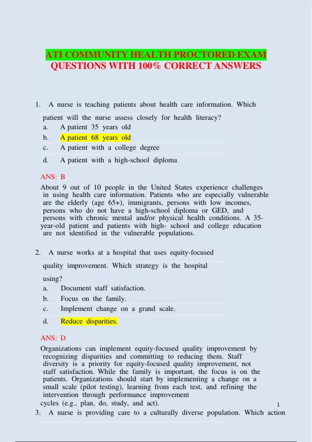 2. A nurse works at a hospital that uses equity-focused
