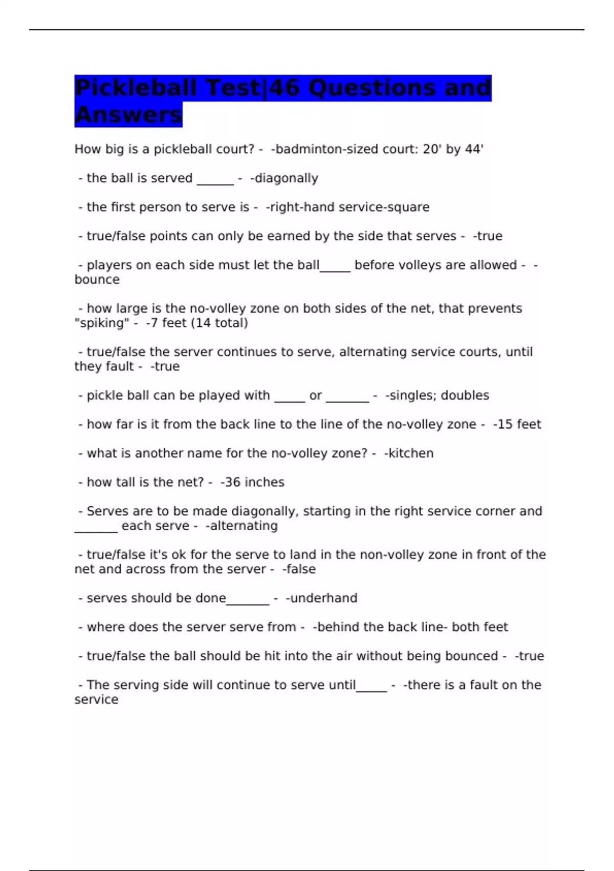Pickleball Test|46 Questions and