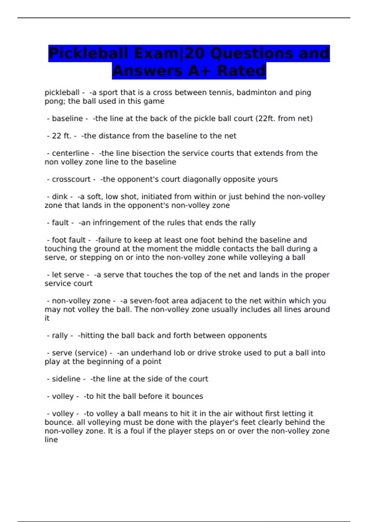 - baseline - -the line at the back of the pickle ball court (22ft. from net)