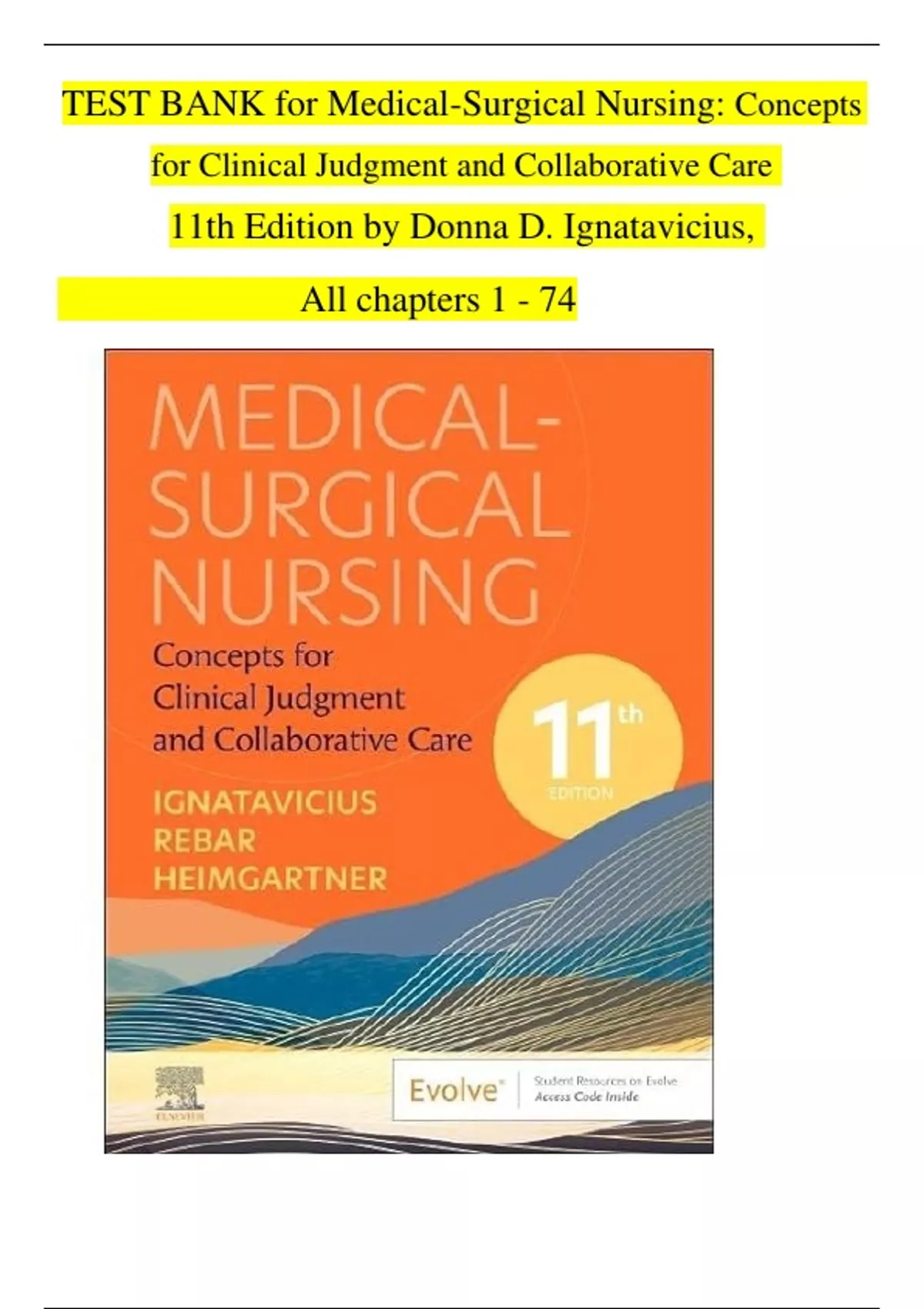 TEST BANK for Medical-Surgical Nursing: Concepts for Clinical Judgment and Collaborative Care 11th Edition by Donna D. Ignatavicius, All chapters 1 - 74
