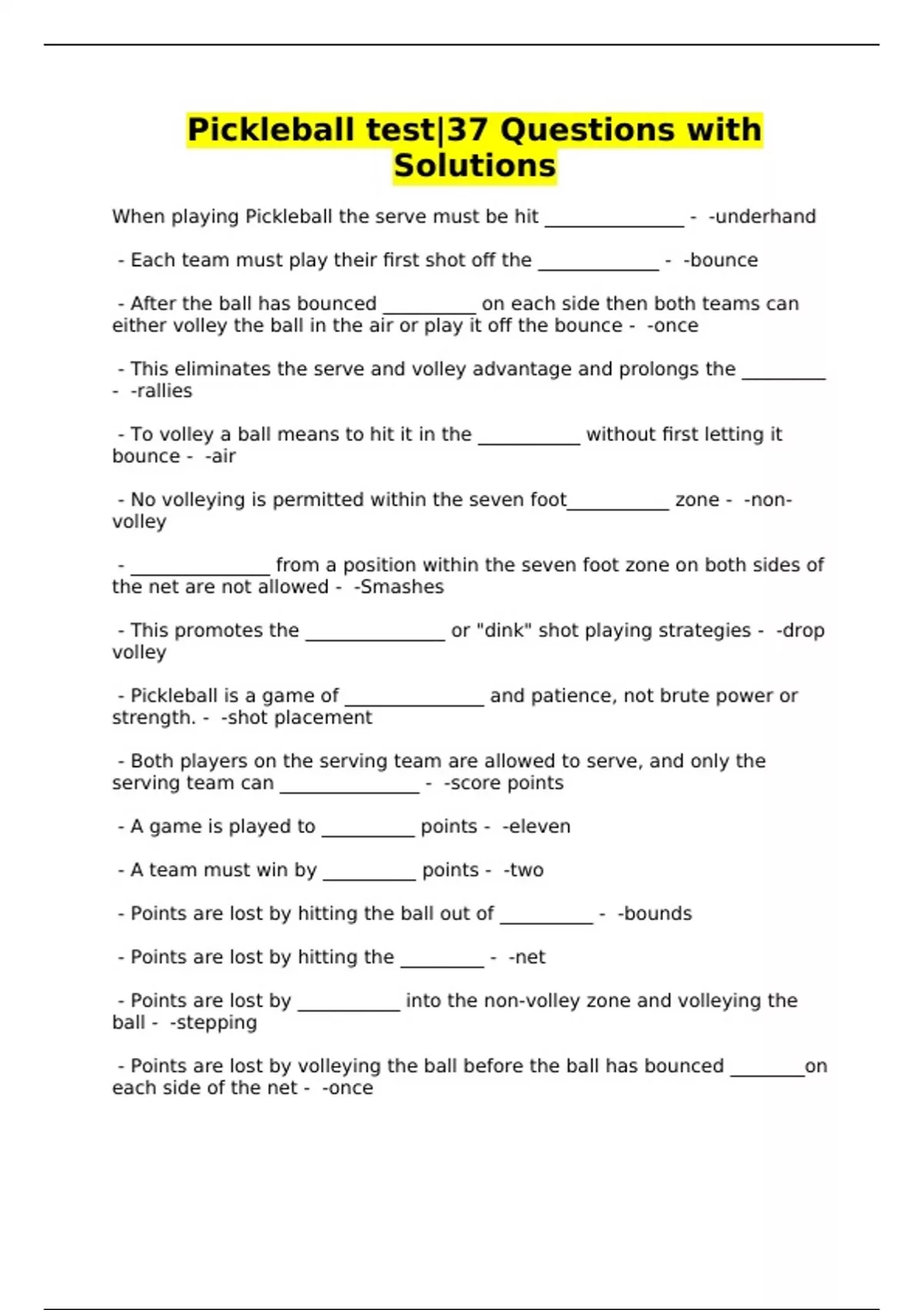 Pickleball test|37 Questions with Solutions