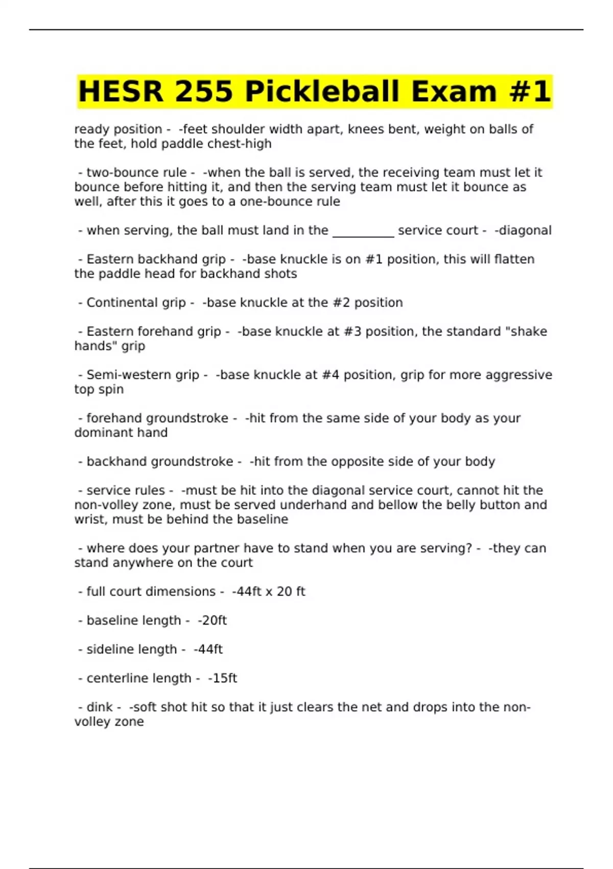 HESR 255 Pickleball Exam #1