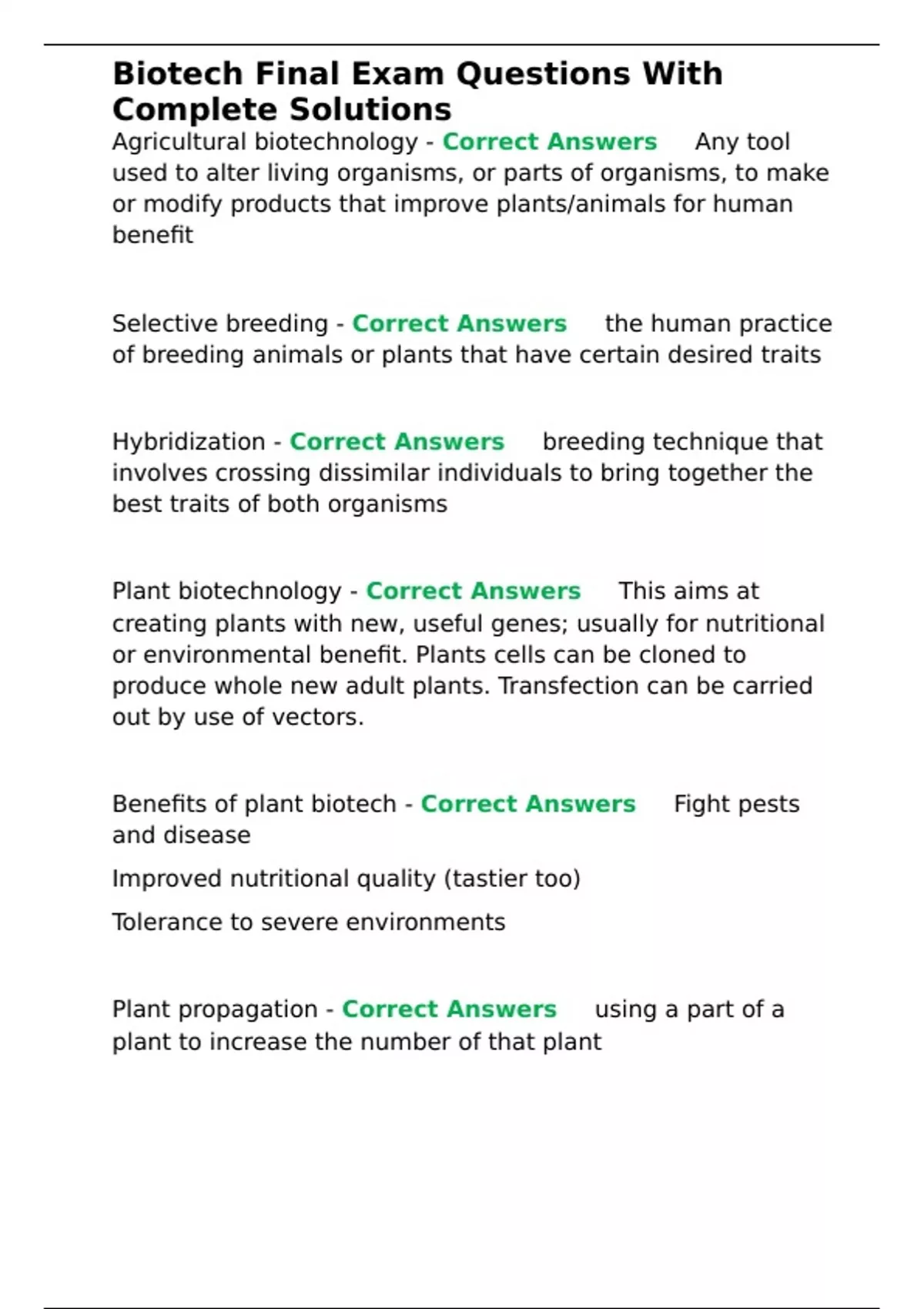 Agricultural biotechnology - Correct Answers ✅Any tool