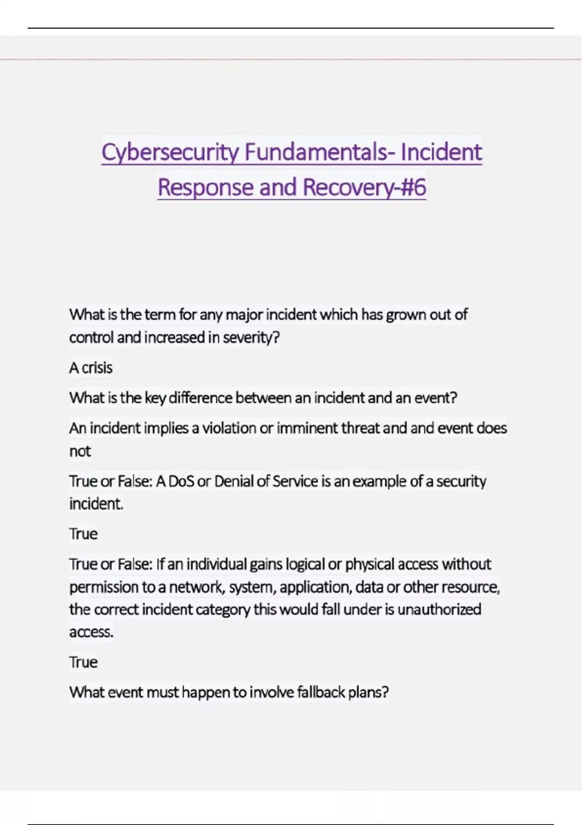 A* Cybersecurity Fundamentals / Incident Response and Recovery-#6