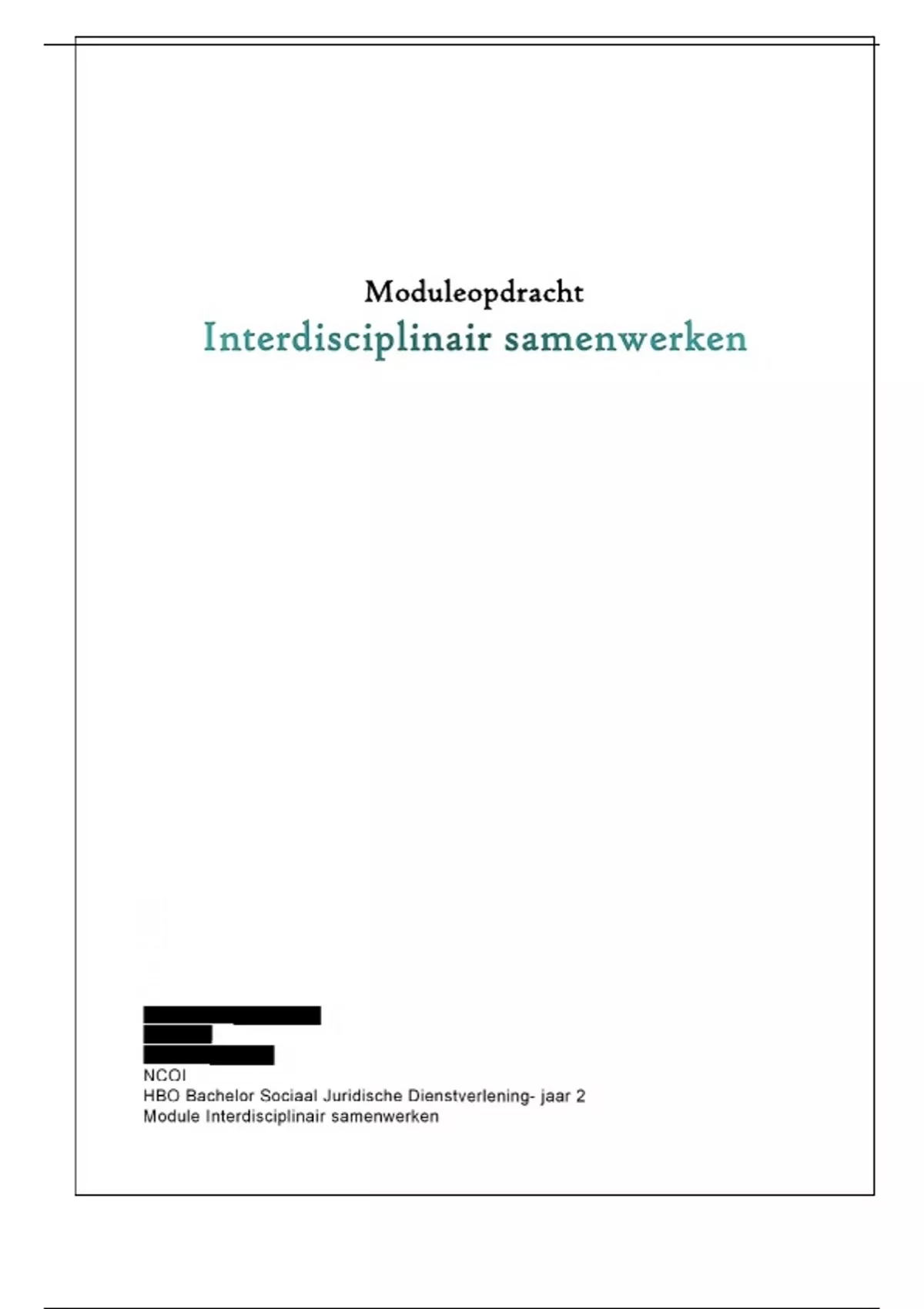 Moduleopdracht Interdisciplinair samenwerken HBO SJD jaar 2 CIJFER 8