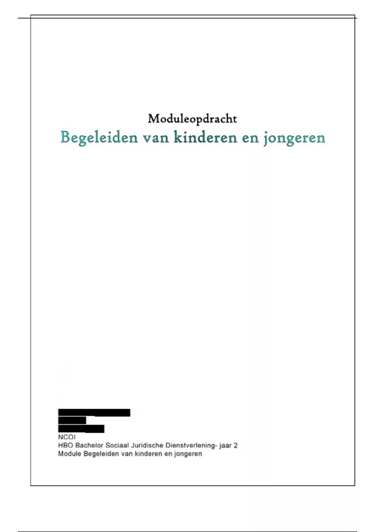 jongeren,” gevolgd via het NCOI. Voor deze opdracht heb ik een casus uit mijn privéomgeving