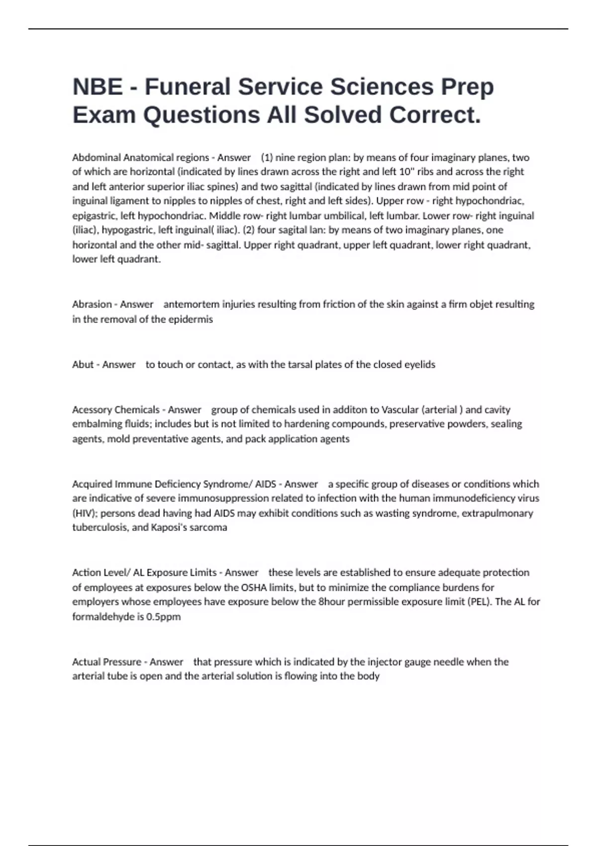 NBE - Funeral Service Sciences Prep Exam Questions All Solved Correct.