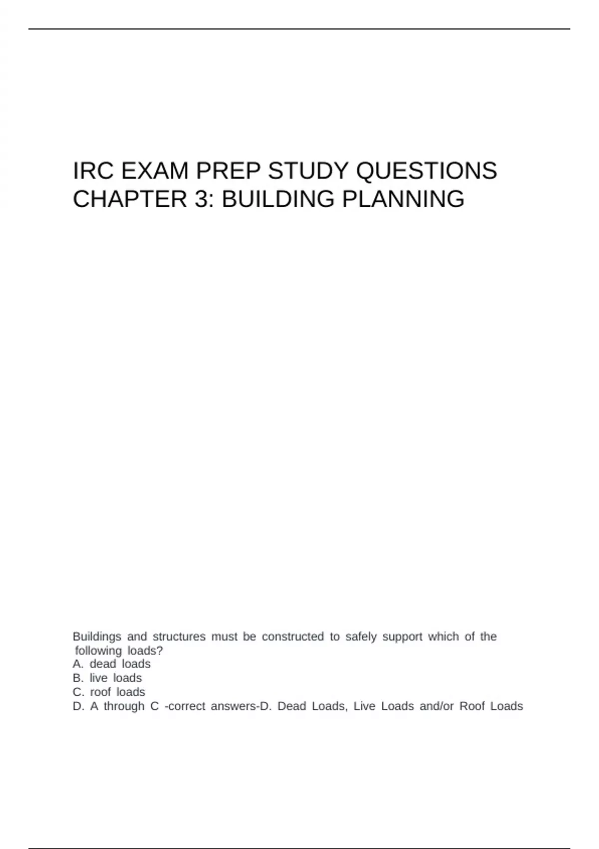 IRC EXAM PREP STUDY QUESTIONS