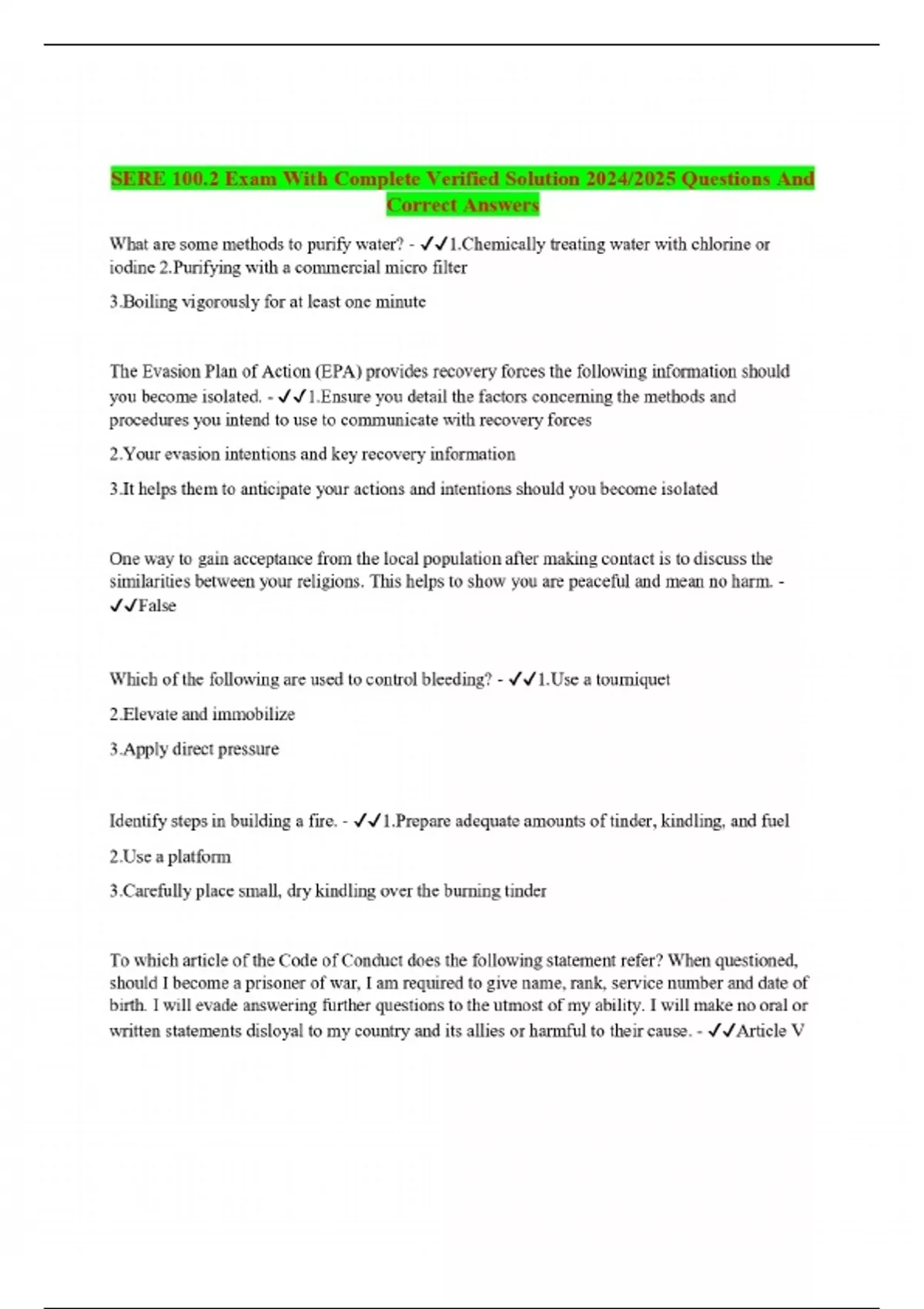 SERE 100.2 Exam With Complete Verified Solution 2024/2025 Questions And Correct Answers