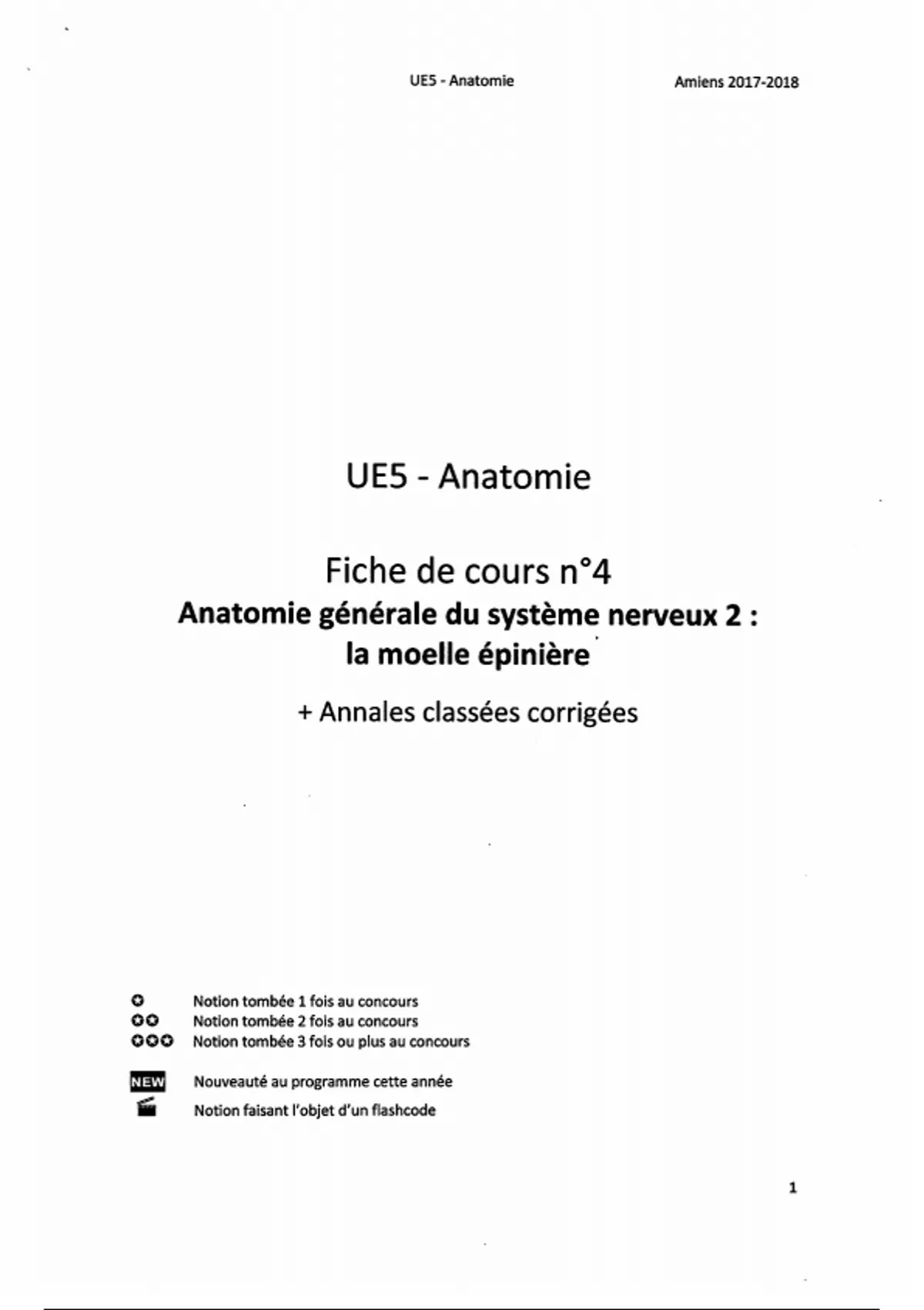 UE5 FC4 - Anatomie générale du système nerveux 2 : la moelle épinière + Annales classées corrigées