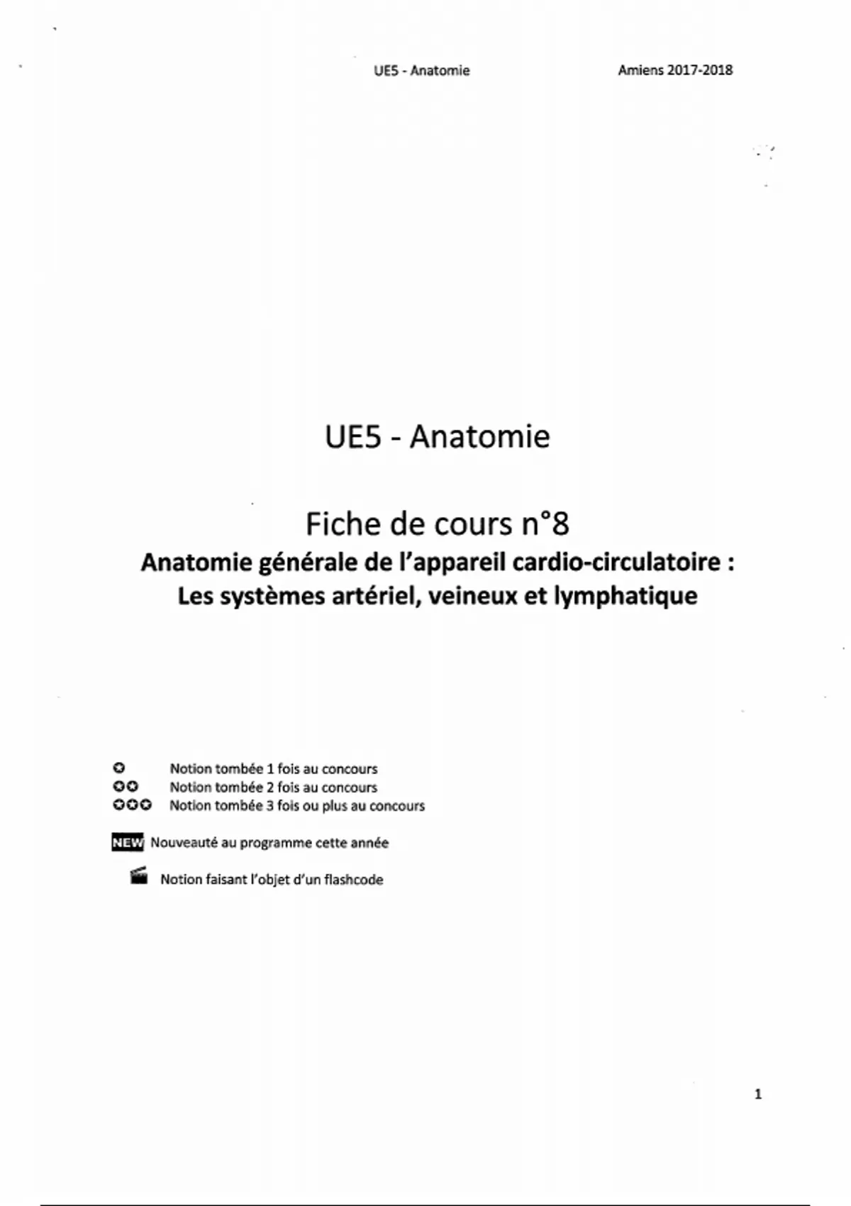 UE5 FC8 - Anatomie générale de l'appareil cardio-circulatoire : Les systèmes artériel, veineux et lymphatique + Annales classées corrigées