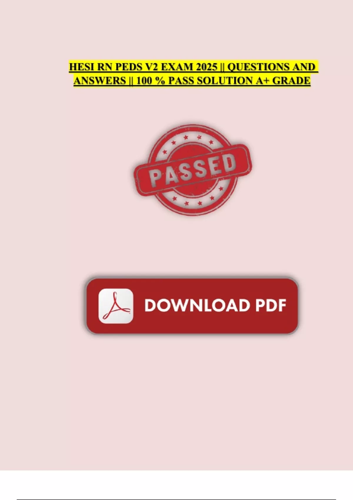 HESI RN PEDS V2 EXAM 2025 || QUESTIONS AND ANSWERS || 100 % PASS SOLUTION A+ GRADE