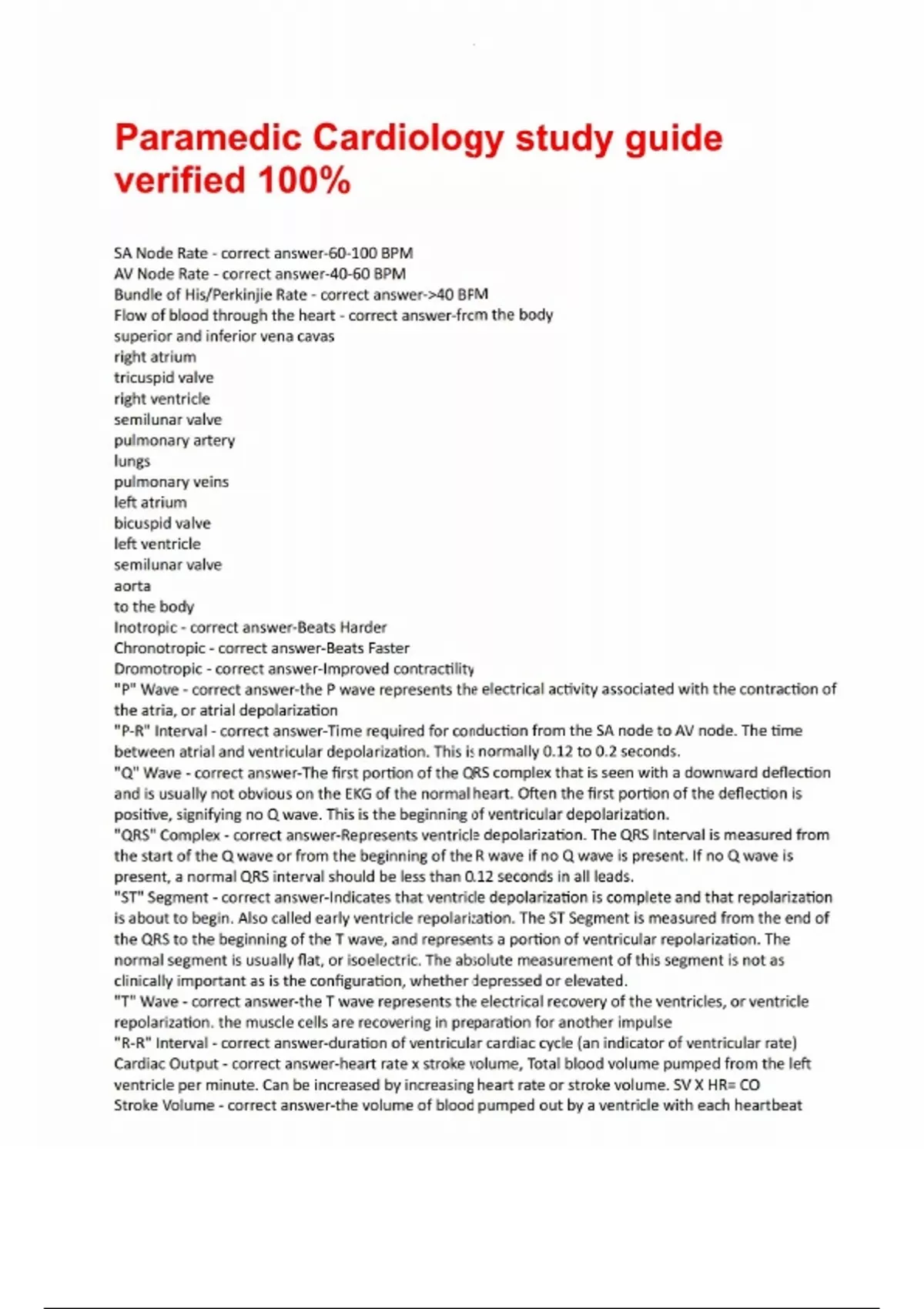 Paramedic Cardiology study guide verified Paramedic Cardiology study guide verified Paramedic Cardiology study guide verified Paramedic Cardiology study guide verified Paramedic Cardiology study guide verified