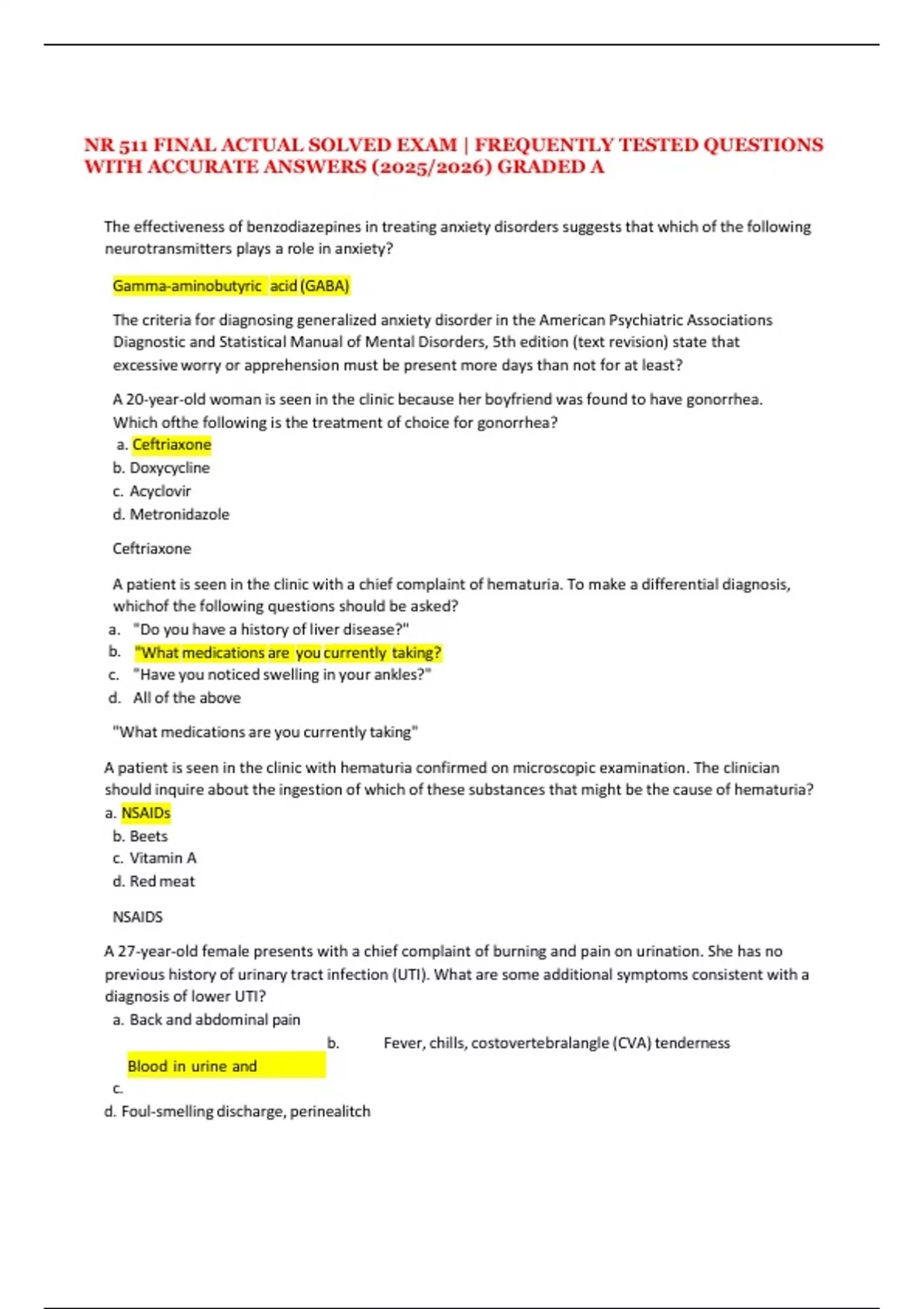 NR 511 FINAL ACTUAL SOLVED EXAM | FREQUENTLY TESTED QUESTIONS