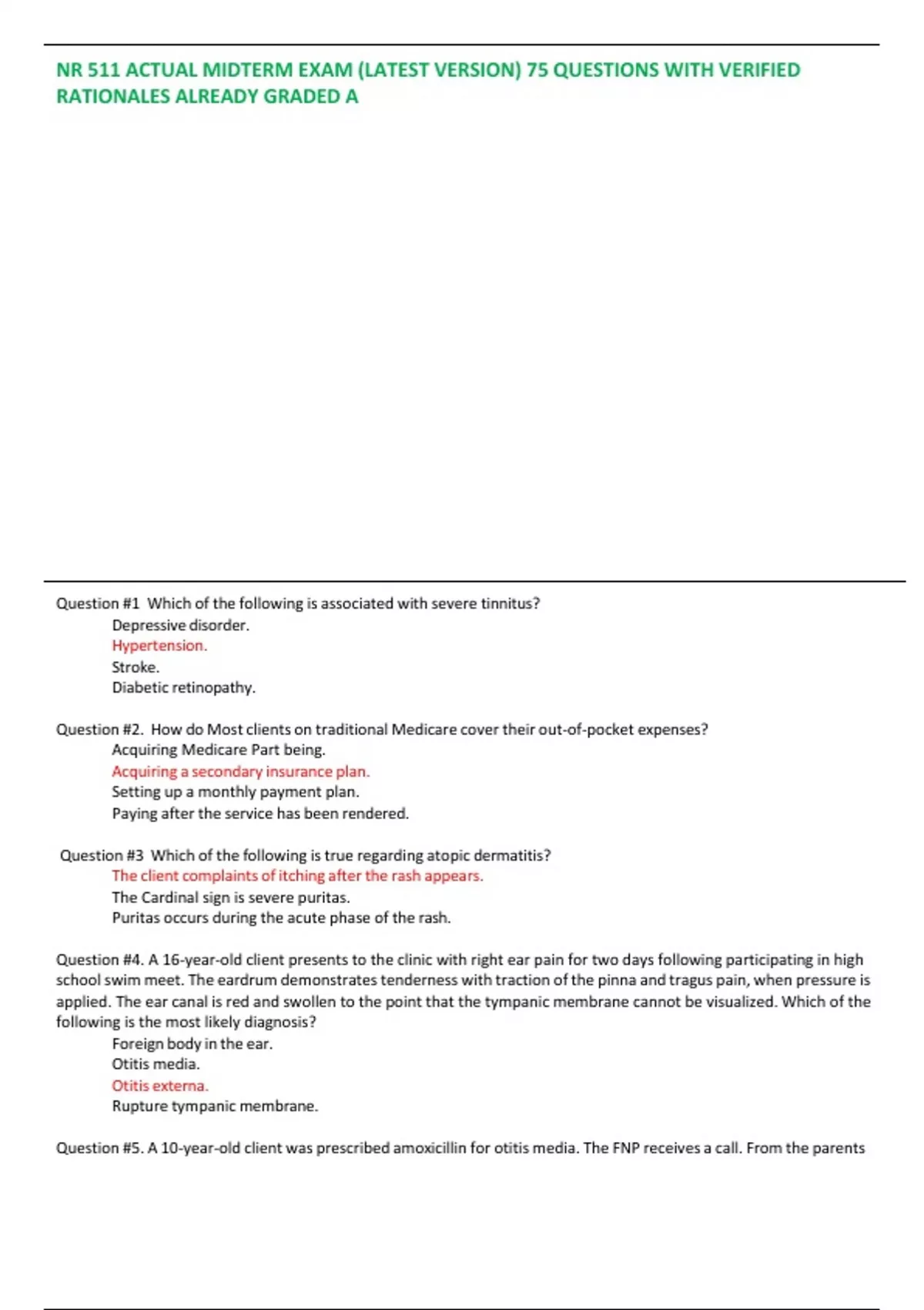 NR 511 ACTUAL MIDTERM EXAM (LATEST VERSION) 75 QUESTIONS WITH VERIFIED