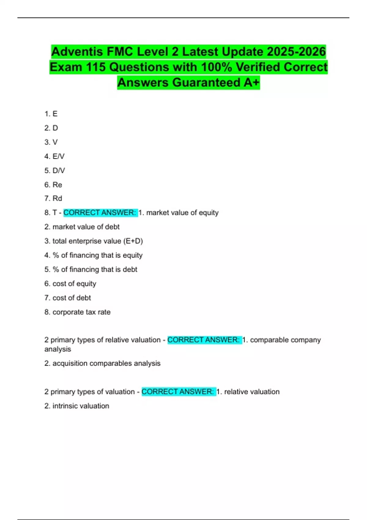2 primary types of valuation - CORRECT ANSWER: 1. relative valuation