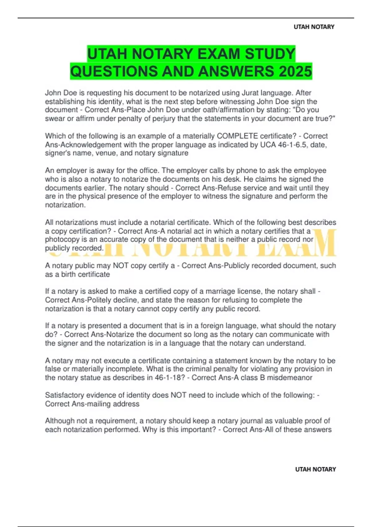 Correct Ans-A Jurat certifies a voluntary signature was made under oath or affirmation