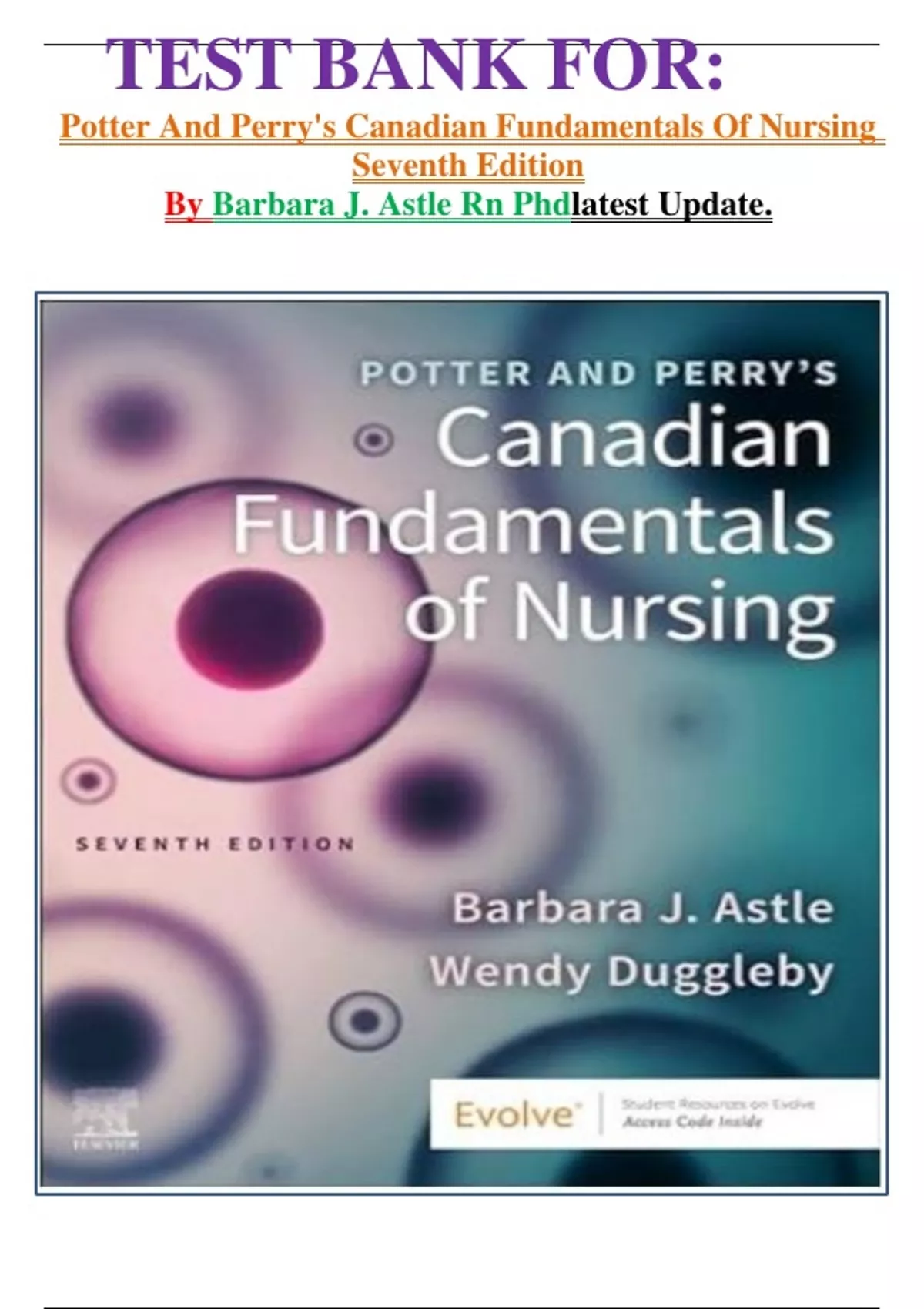 TEST BANK FOR: Potter And Perry's Canadian Fundamentals Of Nursing Seventh Edition By Barbara J. Astle Rn Phdlatest Update.