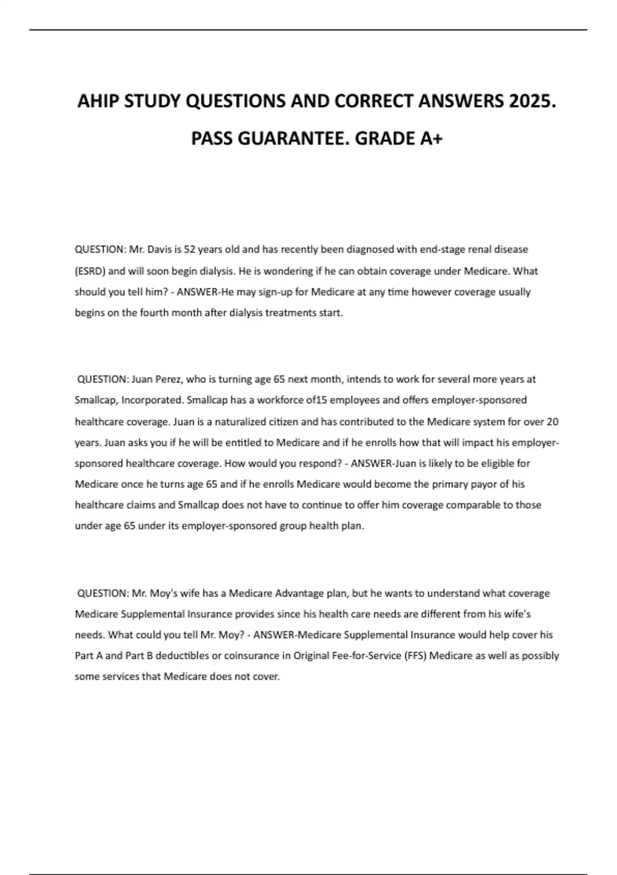 AHIP STUDY QUESTIONS AND CORRECT ANSWERS 2025.