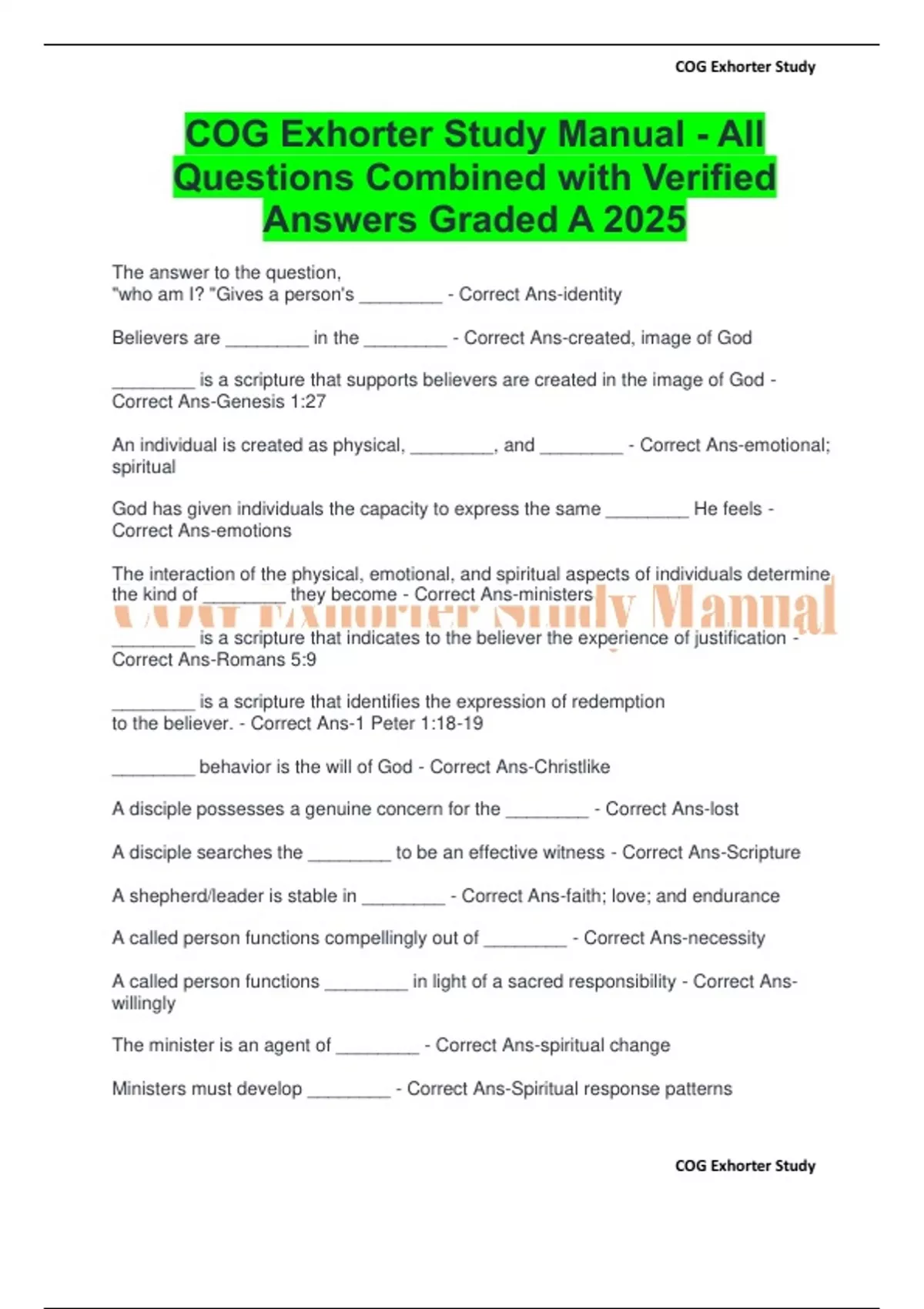 As a shepherd/leader, a minister accents ministry ________ - Correct Ans-priorities