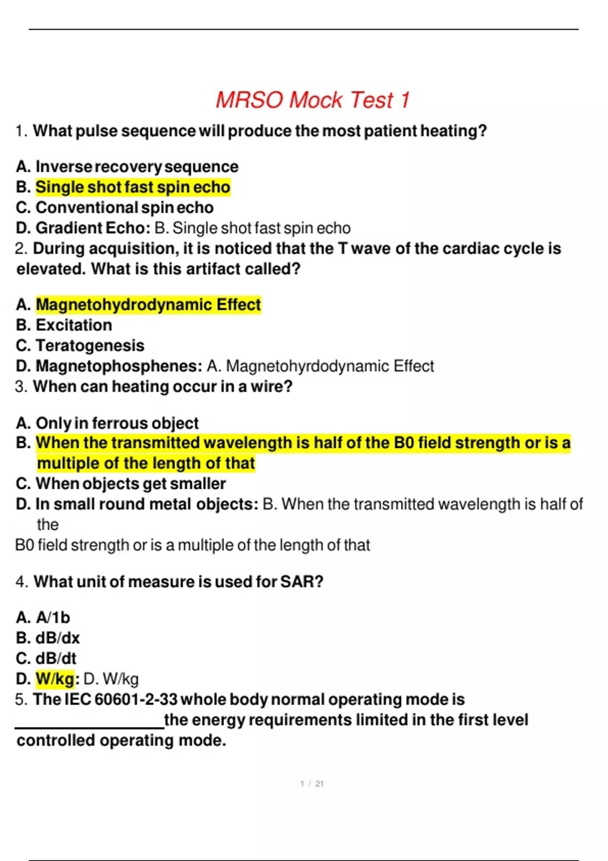 D. Gradient Echo: B. Single shot fast spin echo | | | | | | |
