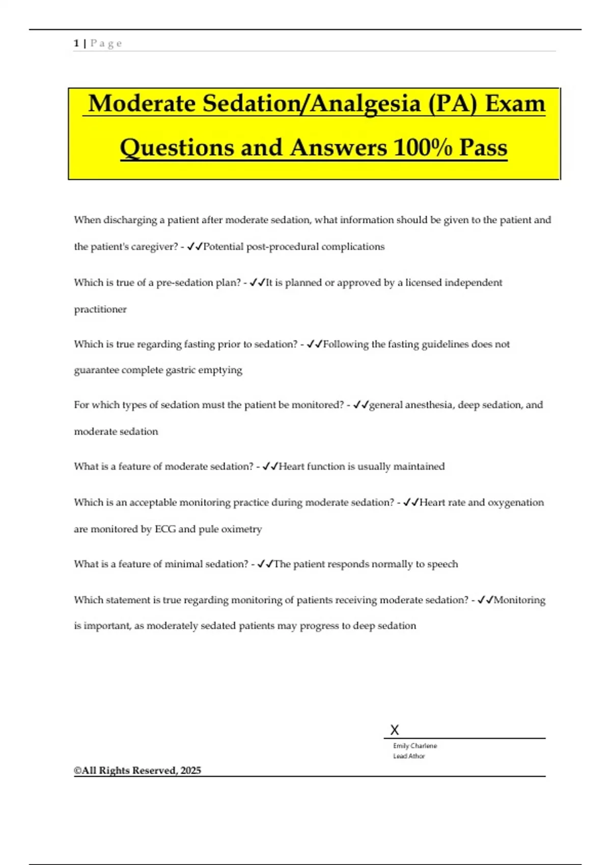 Moderate Sedation/Analgesia (PA) Exam Questions and Answers 100% Pass