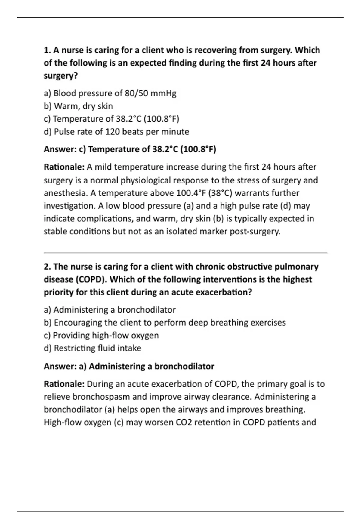 1. A nurse is caring for a client who is recovering from surgery. Which