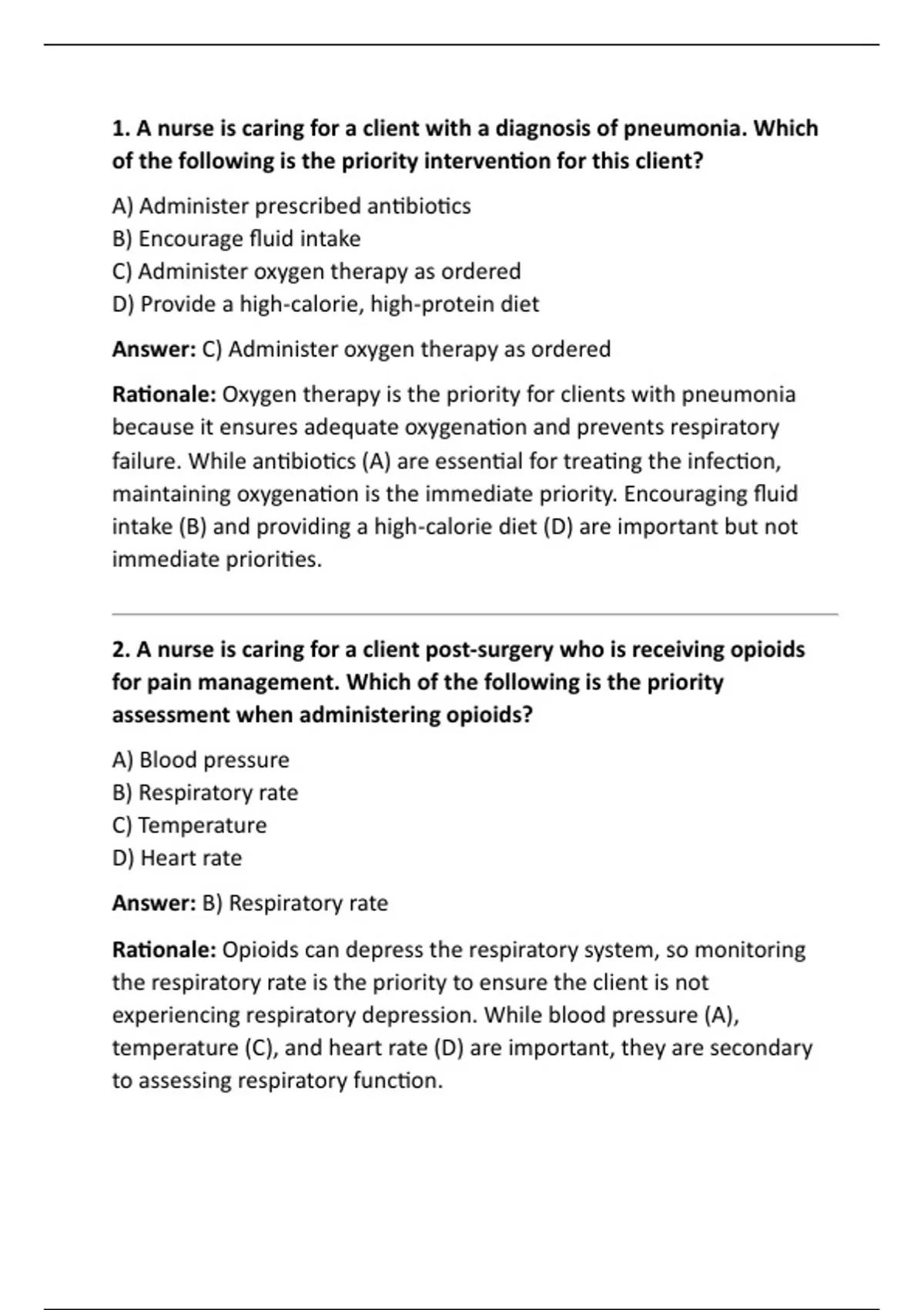 1. A nurse is caring for a client with a diagnosis of pneumonia. Which