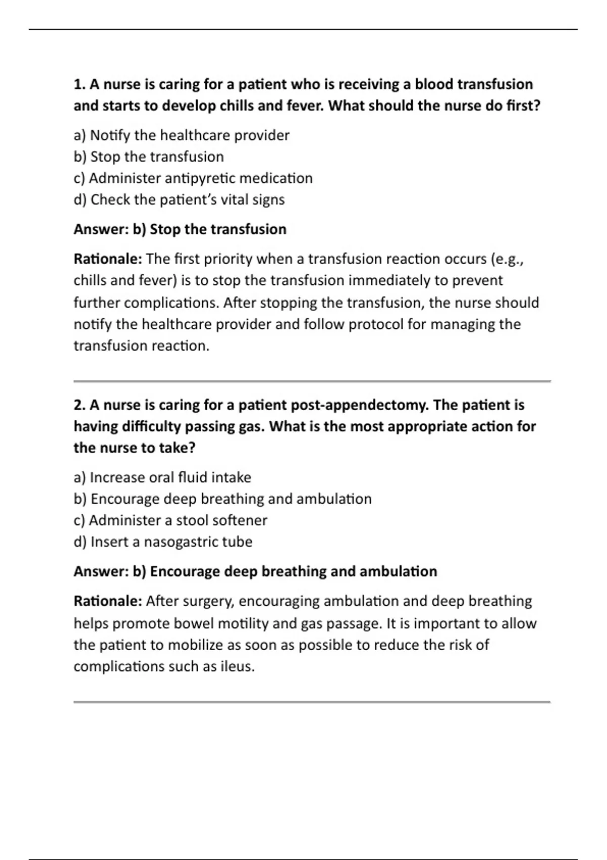 1. A nurse is caring for a patient who is receiving a blood transfusion