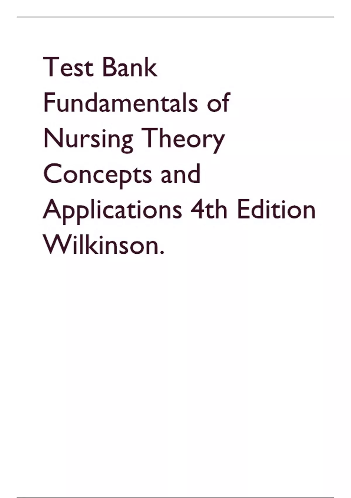 Test Bank Fundamentals of Nursing Theory Concepts and Applications 4th Edition Wilkinson.