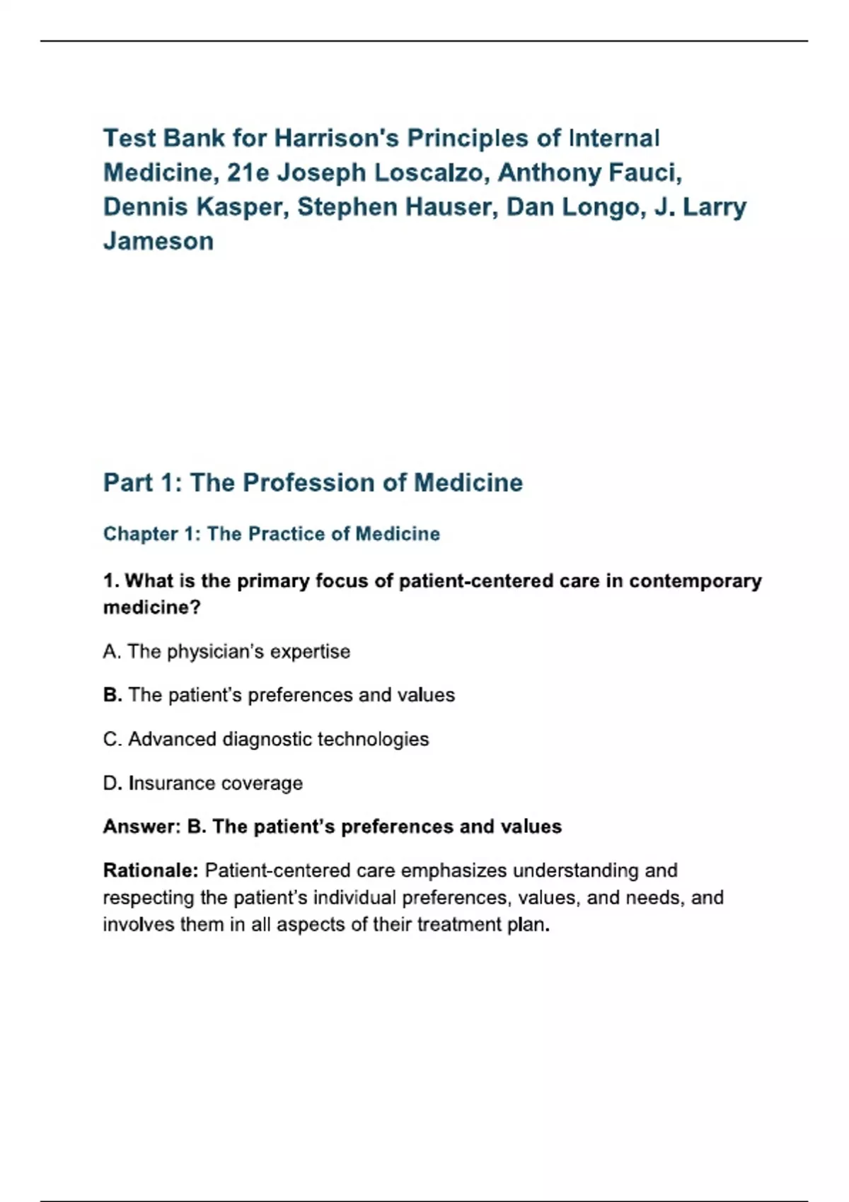 Test Bank for Harrison's Principles of Internal MedicineTest Bank for Harrison's Principles of Internal MedicineTest Bank for Harrison's Principles of Internal MedicineTest Bank for Harrison's Principles of Internal Medicine