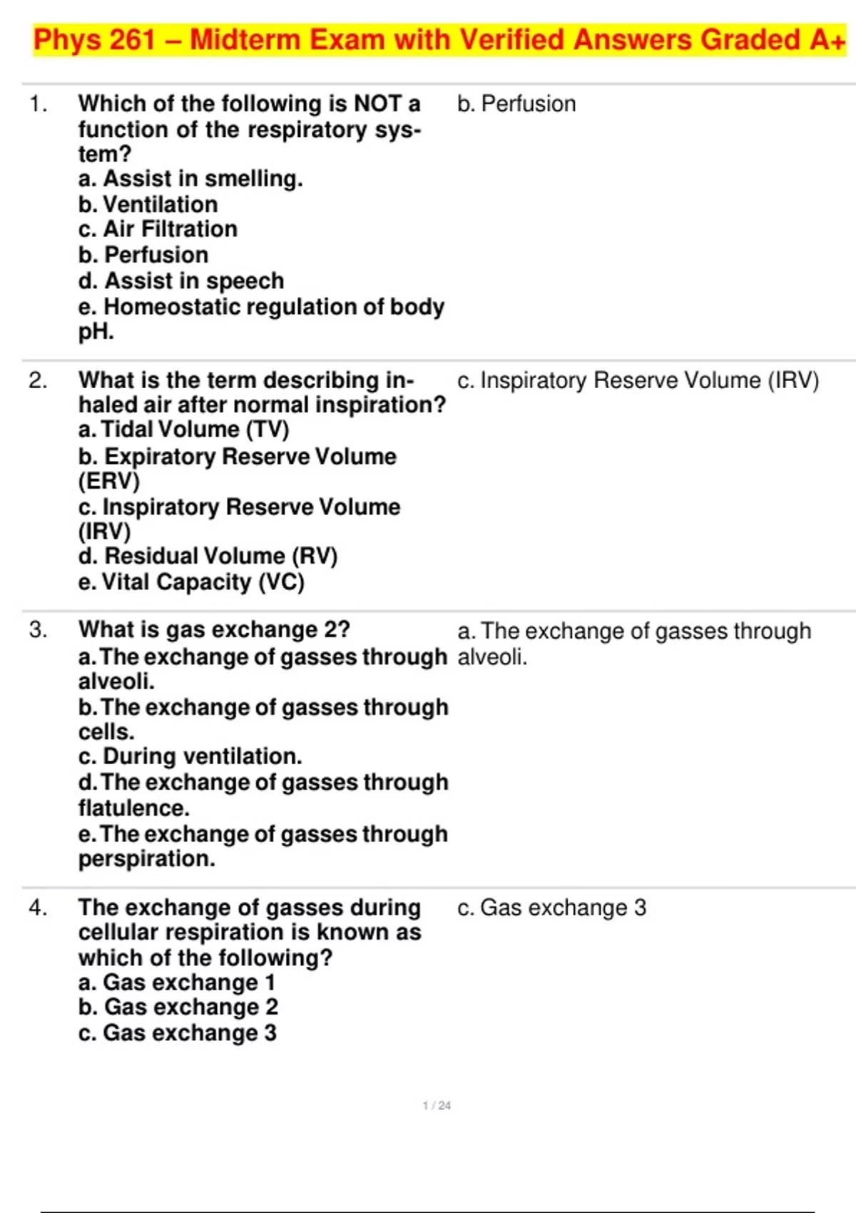 , Phys 261 – Midterm Exam with Verified Answers Graded A+
