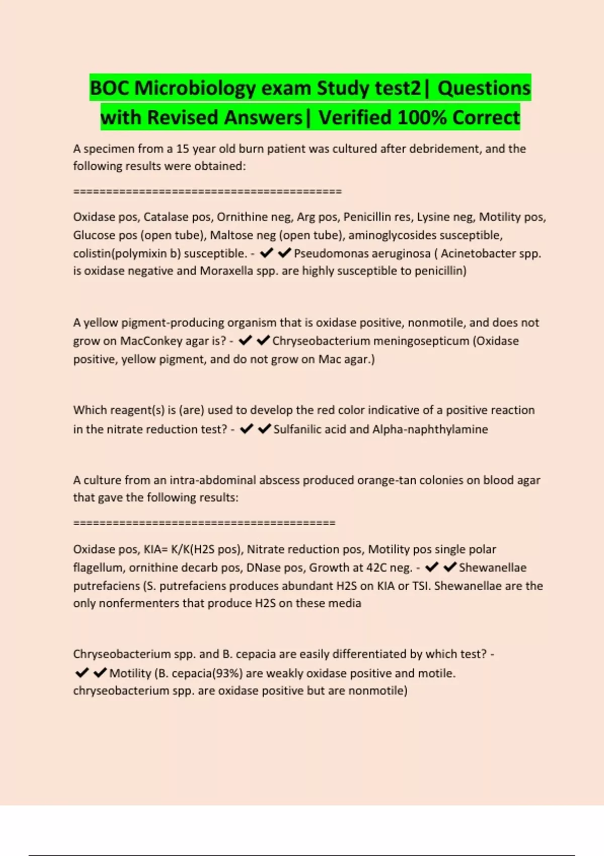 BOC Microbiology exam Study test2| Questions with Revised Answers| Verified 100% Correct