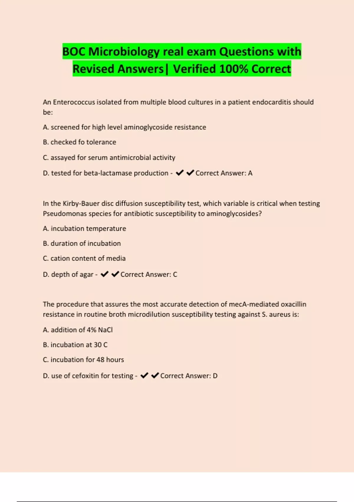 BOC Microbiology real exam Questions with