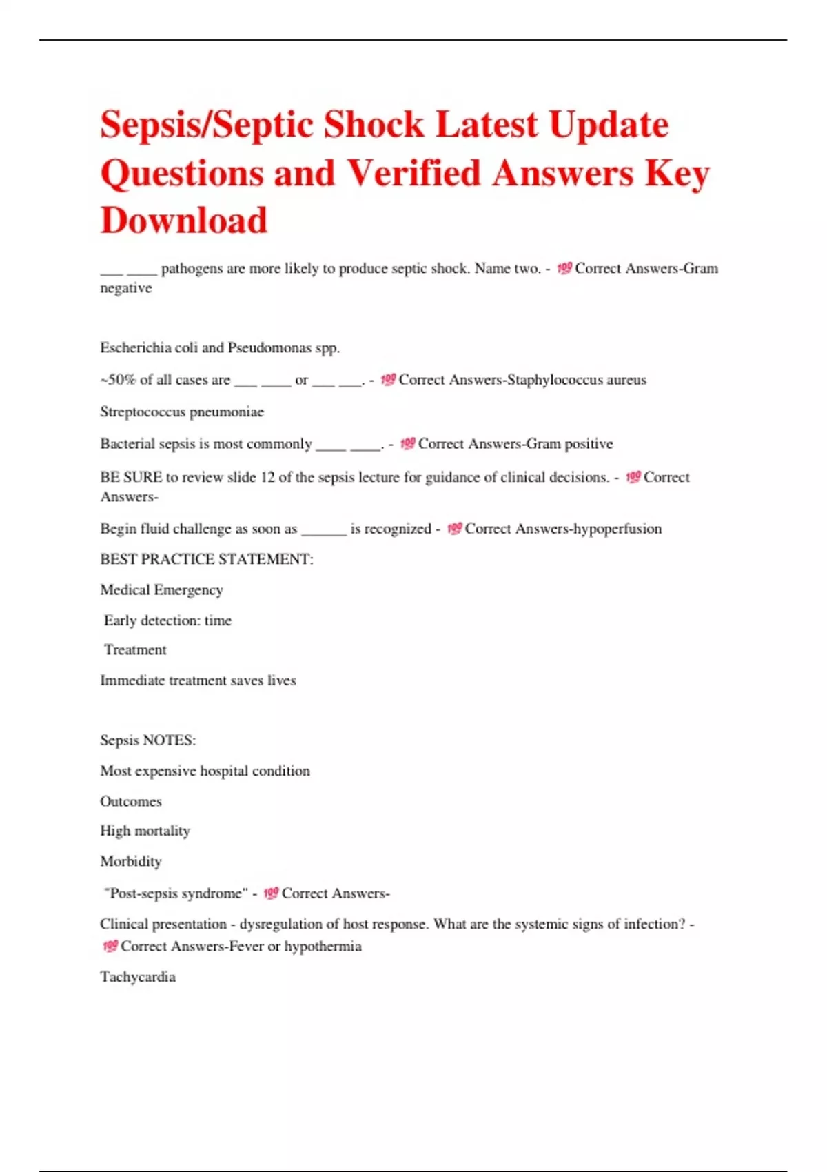 Sepsis/Septic Shock Latest Update Questions and Verified Answers Key Download