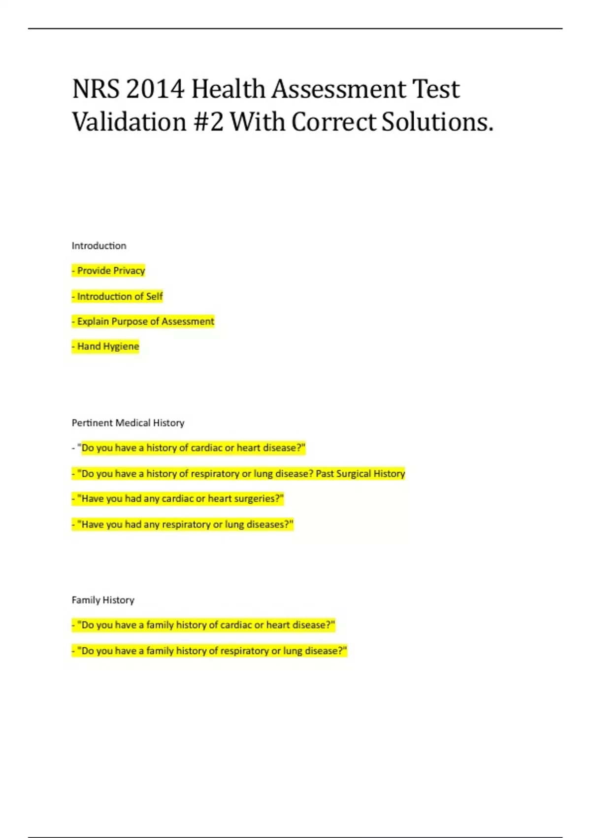 NRS 2014 Health Assessment Test