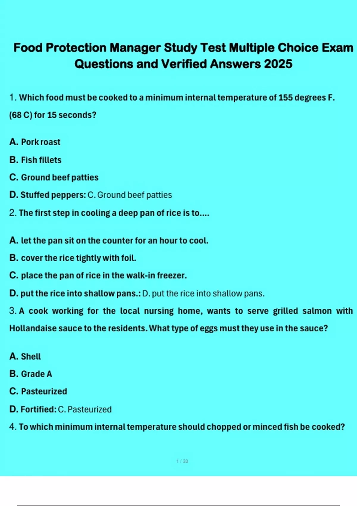 1. Which food must be cooked to a minimum internal temperature of 155 degrees F.