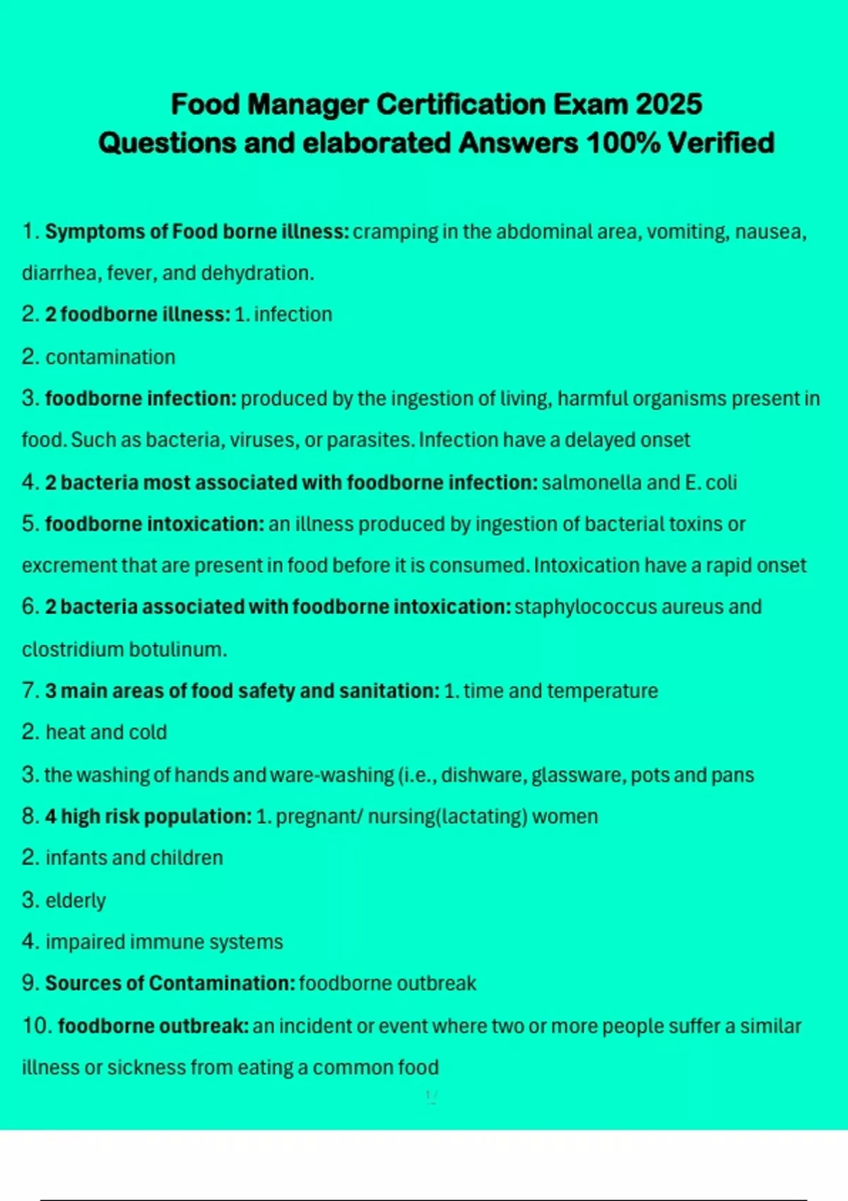 1. Symptoms of Food borne illness: cramping in the abdominal area, vomiting, nausea,