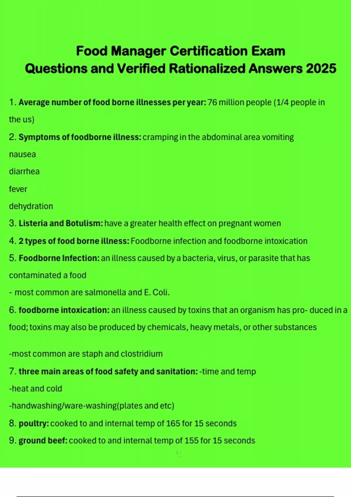 1. Average number of food borne illnesses per year: 76 million people (1/4 people in
