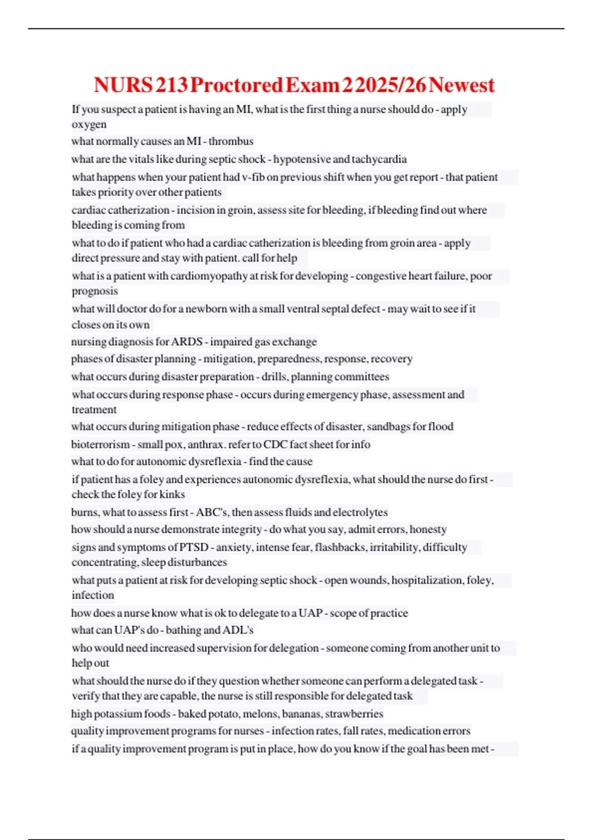NURS 213 Proctored Exam 2 2025/26 Newest Il Il Il Il Il Il Il Il