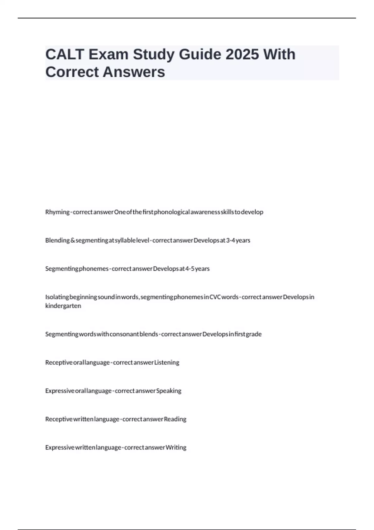 Segmenting phonemes - correct answer Develops at 4-5 years