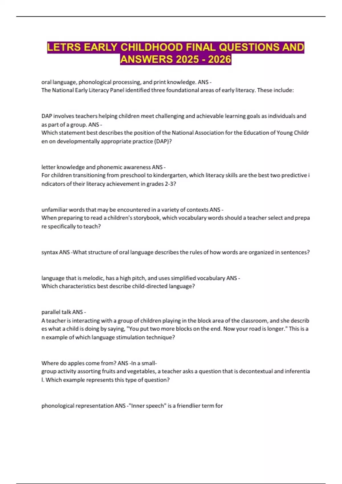 LETRS EARLY CHILDHOOD FINAL QUESTIONS AND ANSWERS