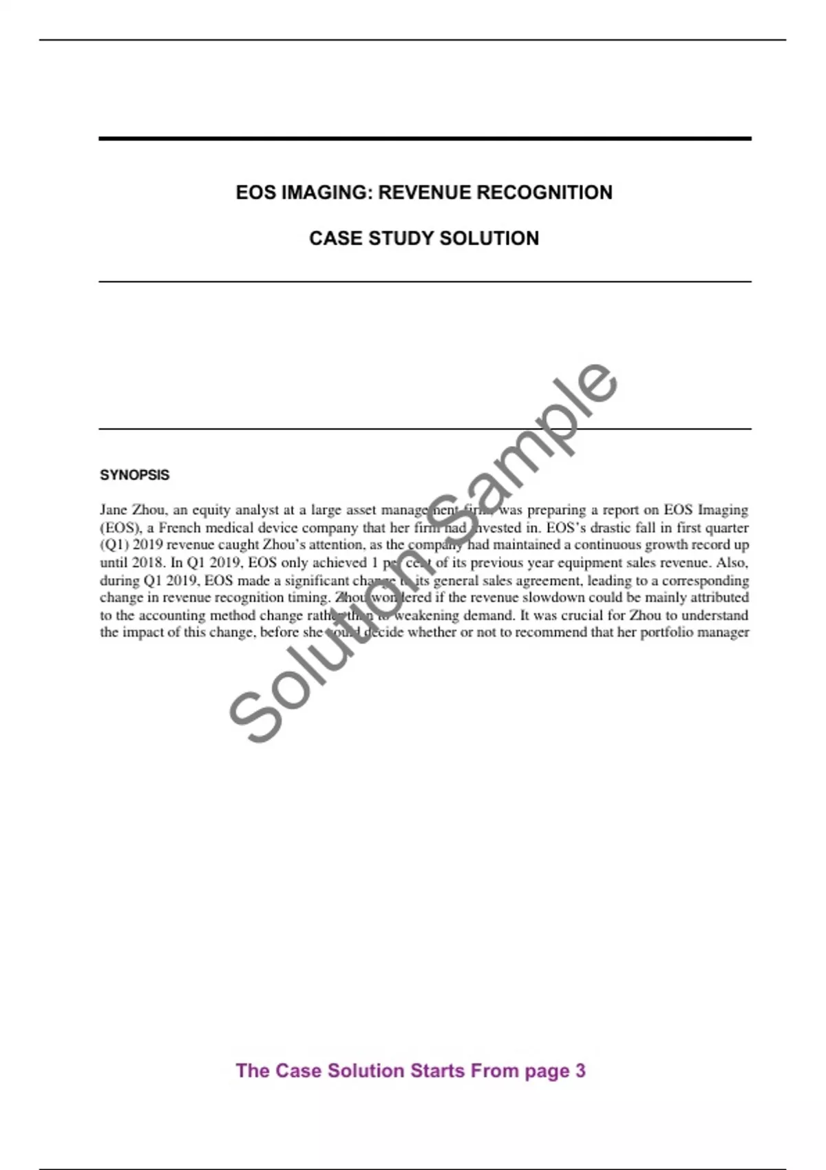 Get EOS Imaging Revenue Recognition Case Study Solution Analysis Answers by Kun Huo, Matthew Sooy, Zoe Zhou | Case ID for this case is W24571. This is a Plagiarism free Case Solution.