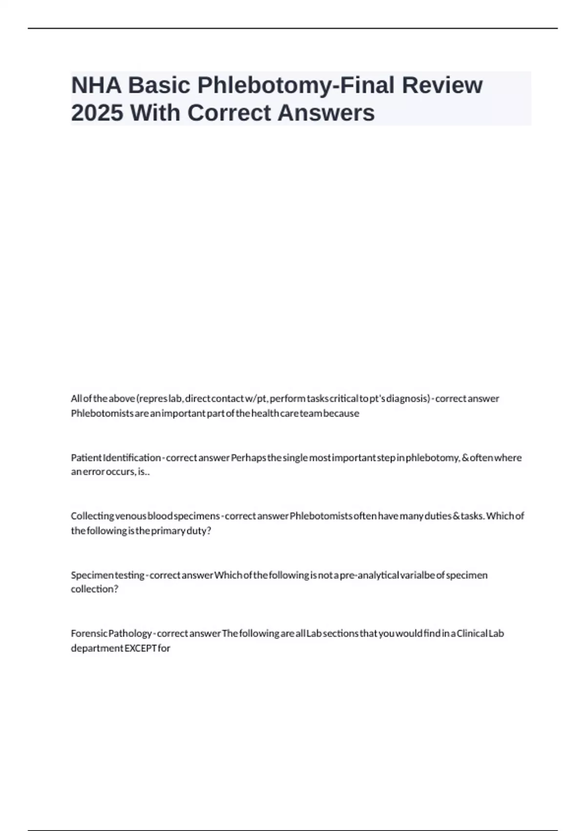 Collecting venous blood specimens - correct answer Phlebotomists often have many duties & tasks. Which of