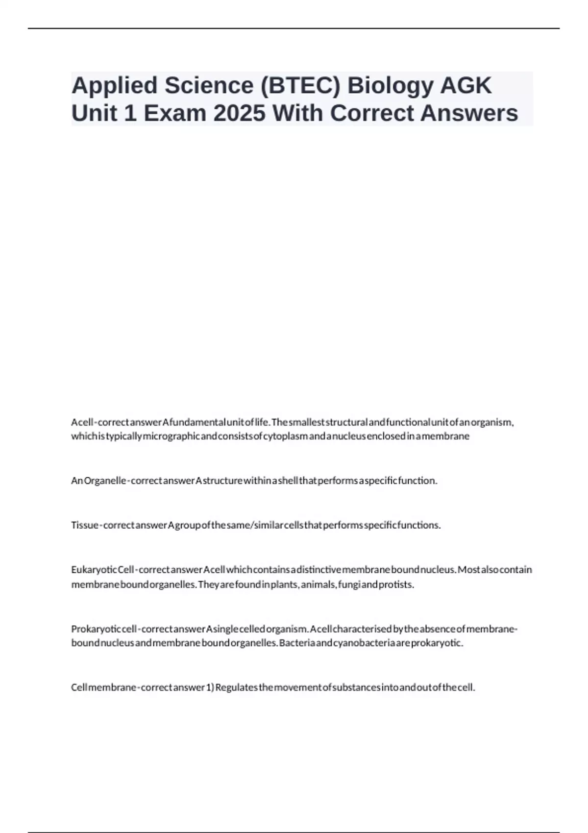 A cell - correct answer A fundamental unit of life. The smallest structural and functional unit of an organism,