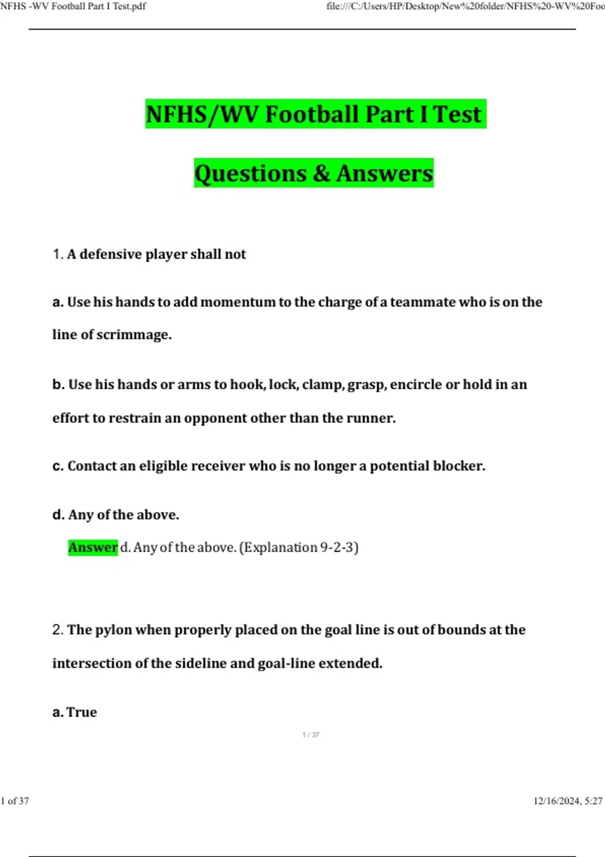 ,NFHS -WV Football Part I Test.pdf file:///C:/Users/HP/Desktop/New%20folder/NFHS%20-WV%20Foo