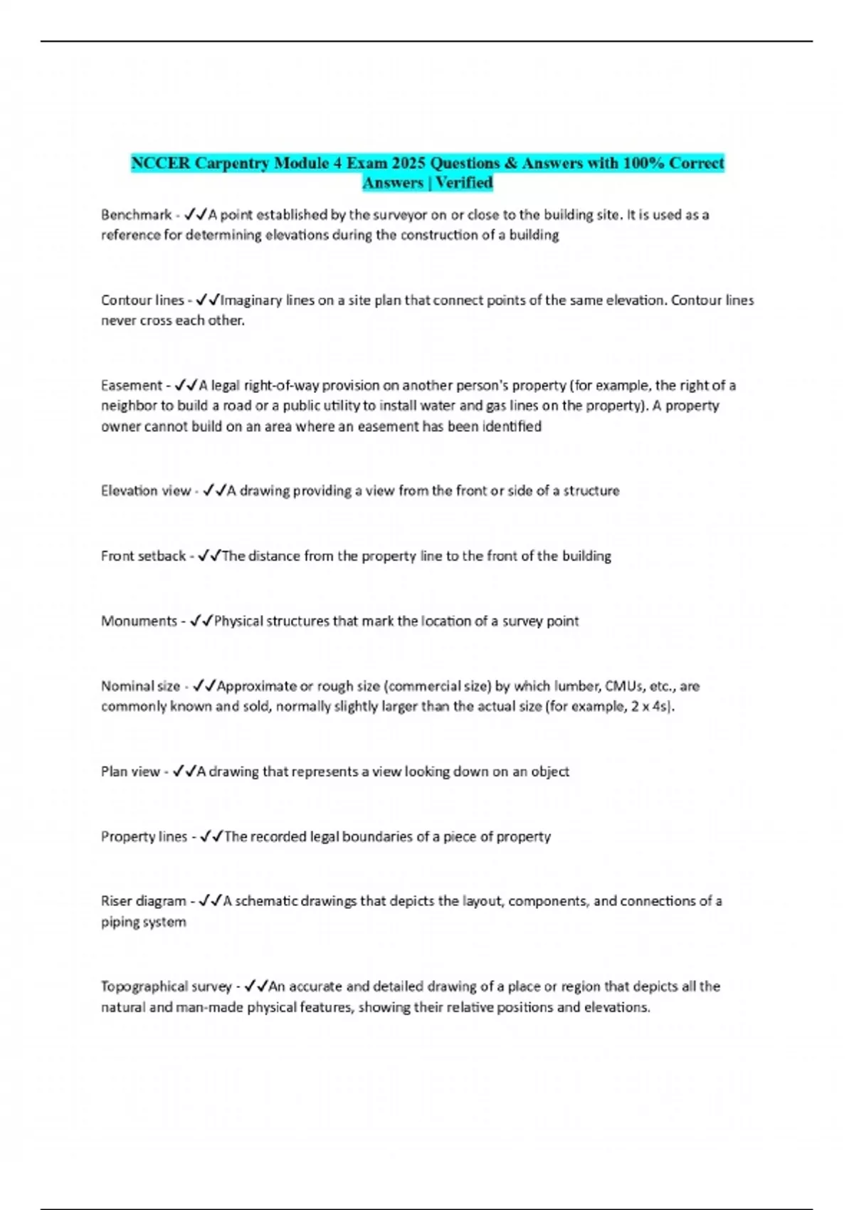 NCCER Carpentry Module 5 Exam 2025 Questions & Answers with 100% Correct Answers | Verified