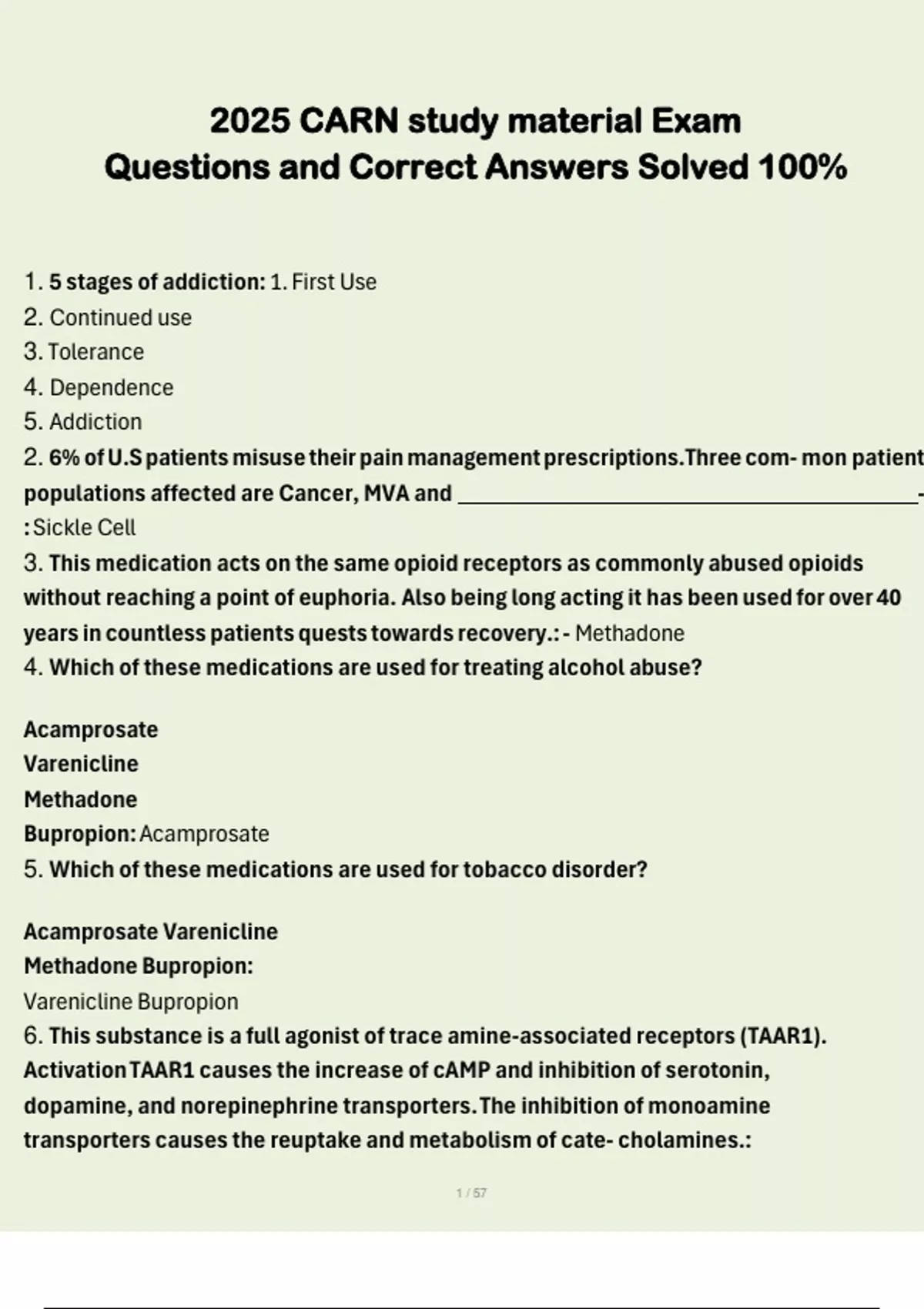 2025 CARN study material Exam Questions and Correct Answers Solved 100%