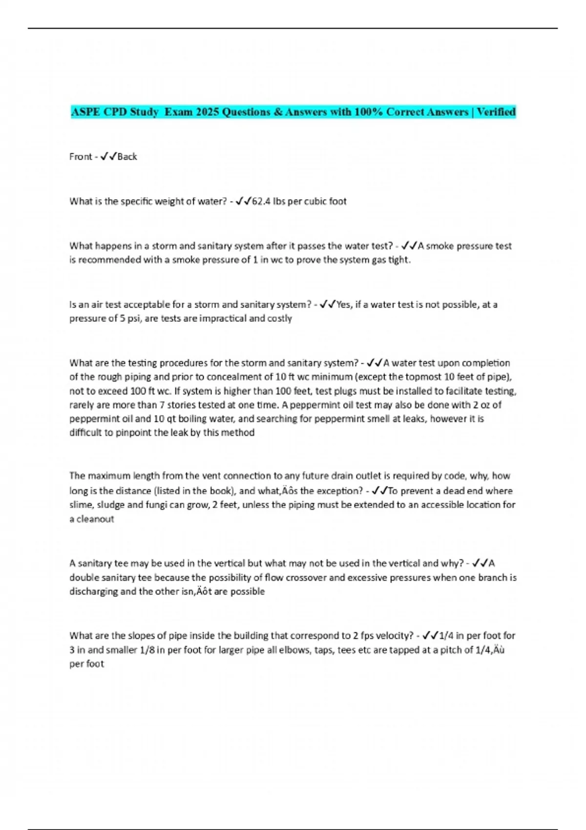 ASPE CPD Study Exam 2025 Questions & Answers with 100% Correct Answers | Verified